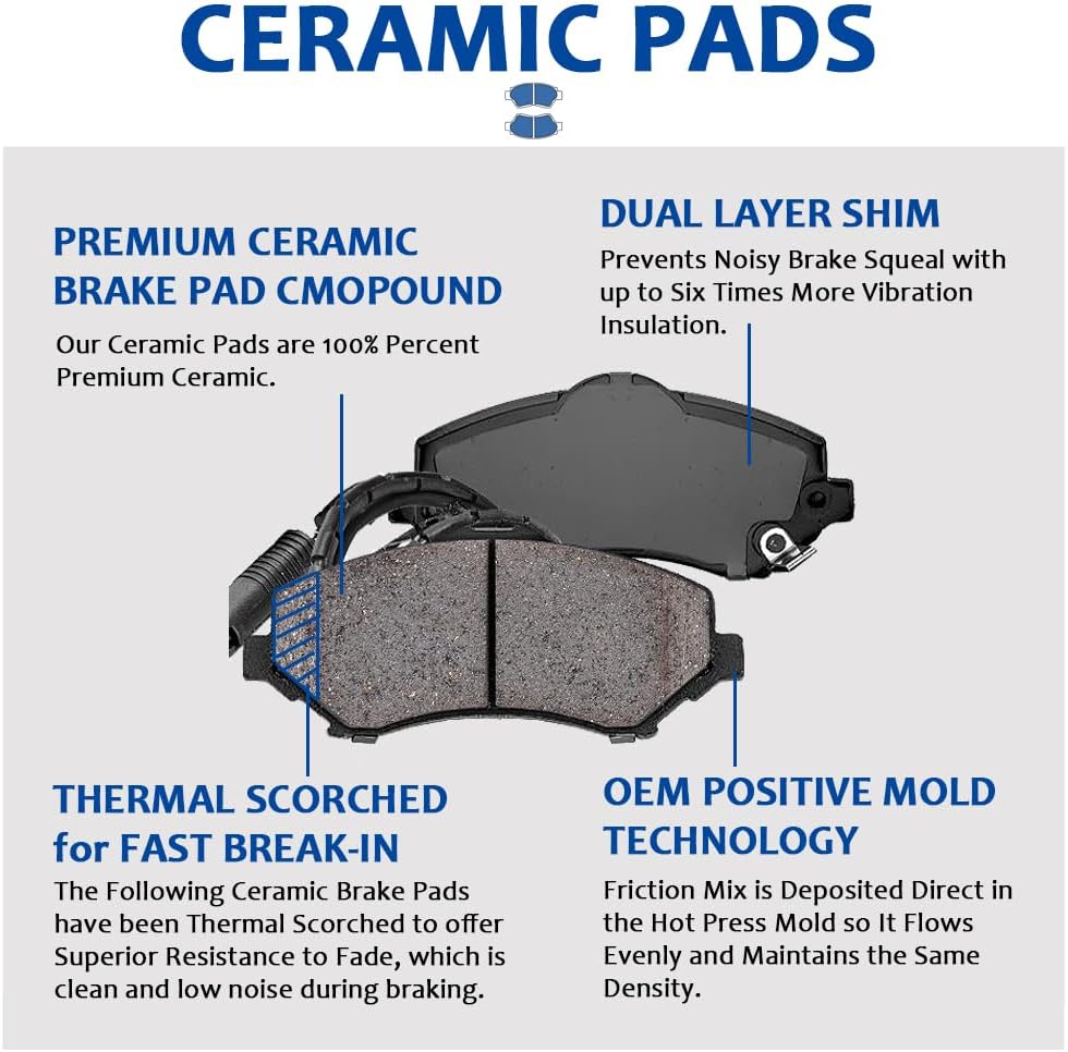 • Ceramic Formula: The brake pads use ceramic formula, which is clean, and low noise during braking
