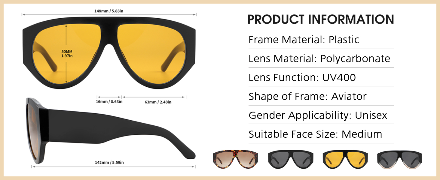 تصميم كلاسيكي أنيق: طراز طيار كلاسيكي جريء مع عدسات كبيرة الحجم لتغطية كامل الوجه وجاذبية لا تتأثر بمرور الزمن