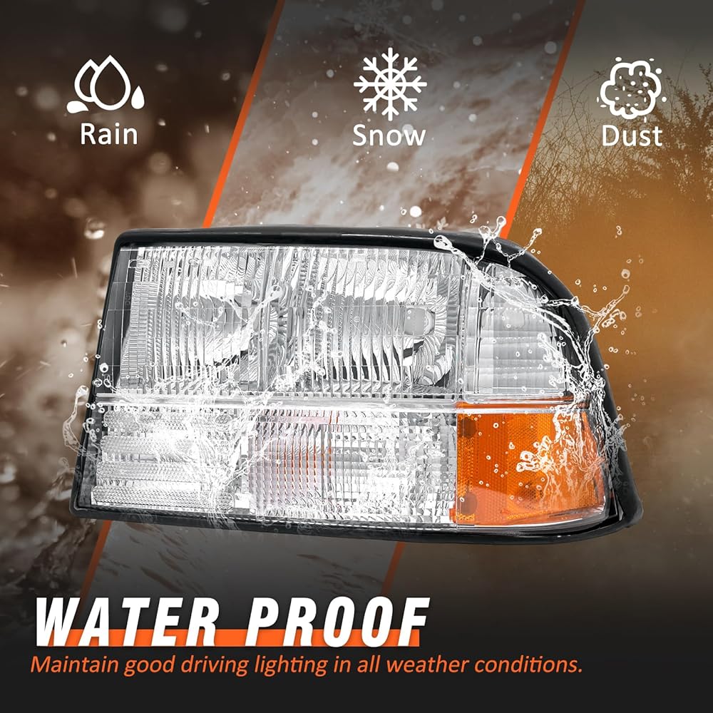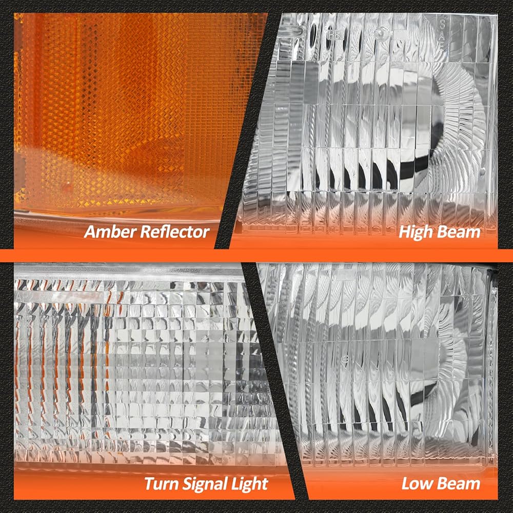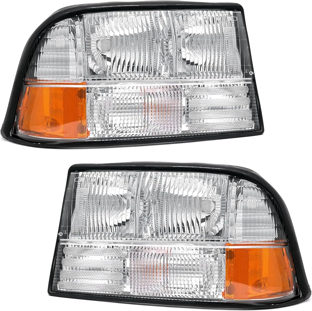 مجموعة المصابيح الأمامية لـ 1998-2004 جي إم سي سونوما / 1998-2001 أولدزموبيل برافادا / 1998-2005 جي إم سي جيمي كروم الإسكان العنبر استبدال زوج الكروم الإسكان العنبر عاكس عدسة واضحة