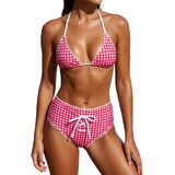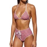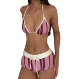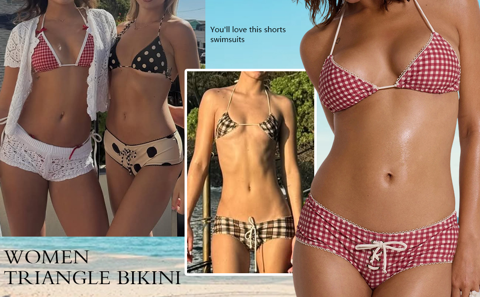 Design: Y2k bikini shorts set, Polka Dot/Striped/Plaid bikini, two piece bikini set, halter string bikini top, low rise drawstring boyshorts, women triangle bikini, y2k bathing suit, halter swimsuits for women, y2k fold over shorts bikini