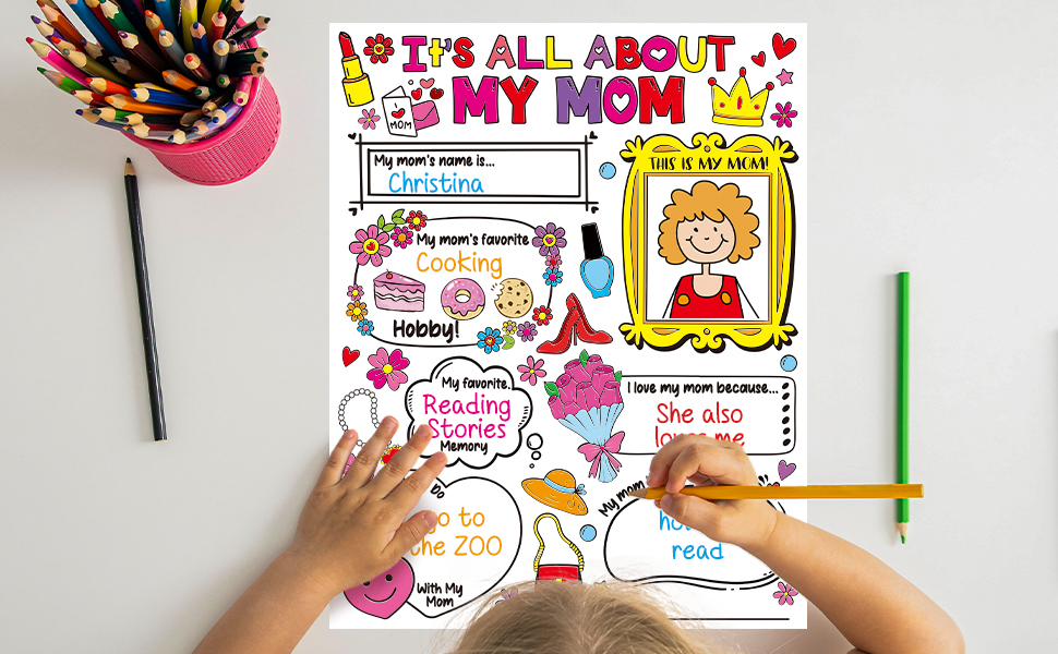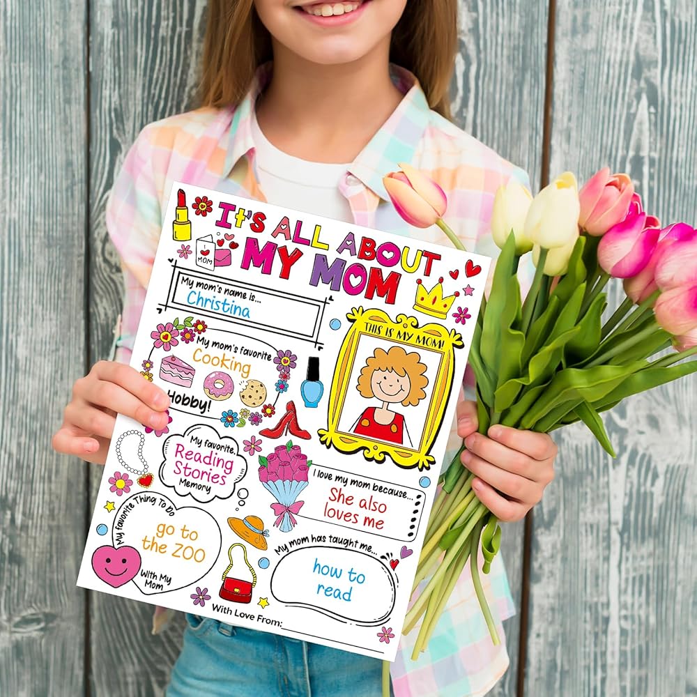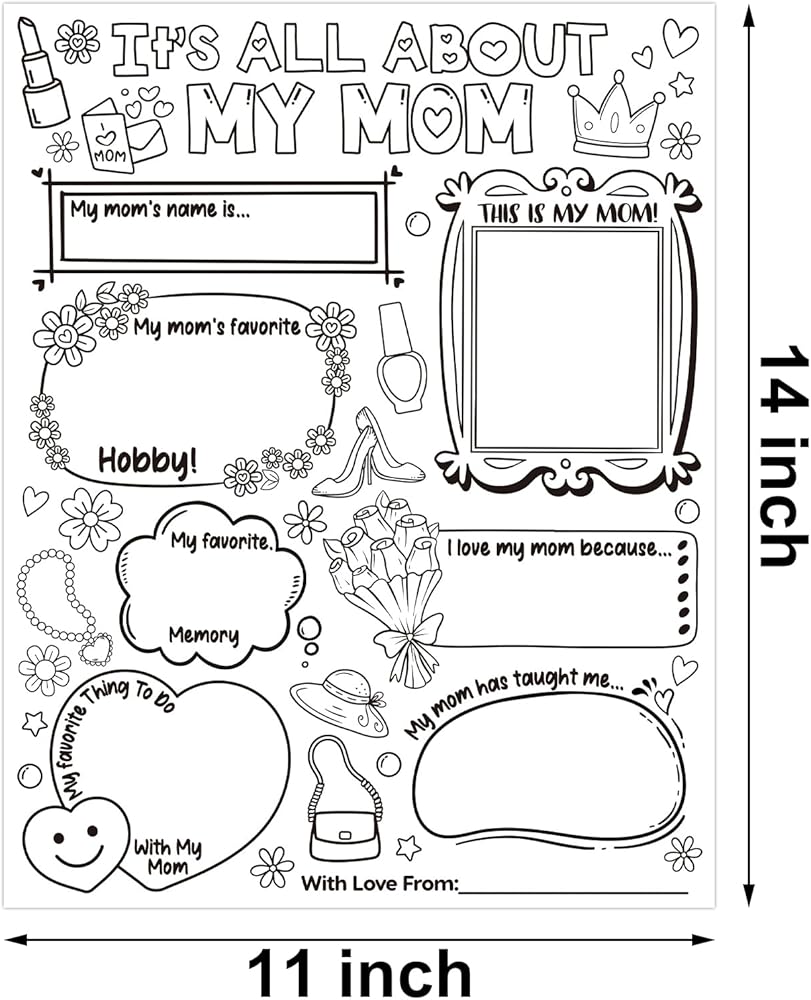 Luckyhern 24 Pcs Mothers Day Coloring Posters Color Your Own All About Mom Poster Mothers Day Crafts for Preschool Kindergarten Elementary School Teachers Mother's Day Gifts School Home Activities