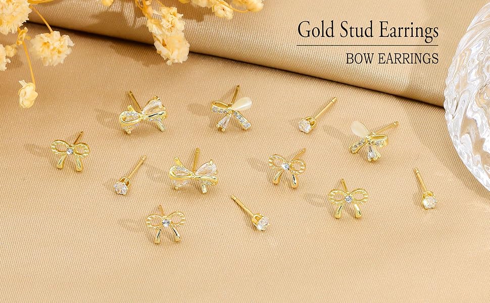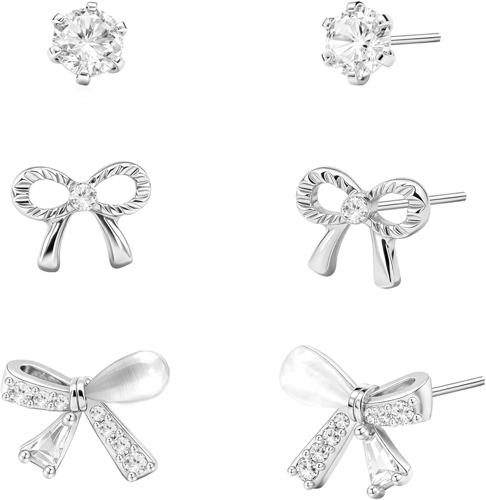 • Bow Earrings for Women: You will get tow pair of bow earrings and one pair of cubic zirconia stud earrings. 3 pairs earrings different styles can provide a variety of options for different occasions.