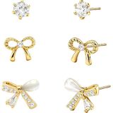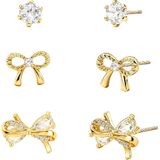 3 Pairs Bow Earrings for Women Jewelry Gold Stud Earrings Hypoallergenic Plated Sterling Silver Posts Earring Gifts for Her Birthday Christmas Wedding Gifts