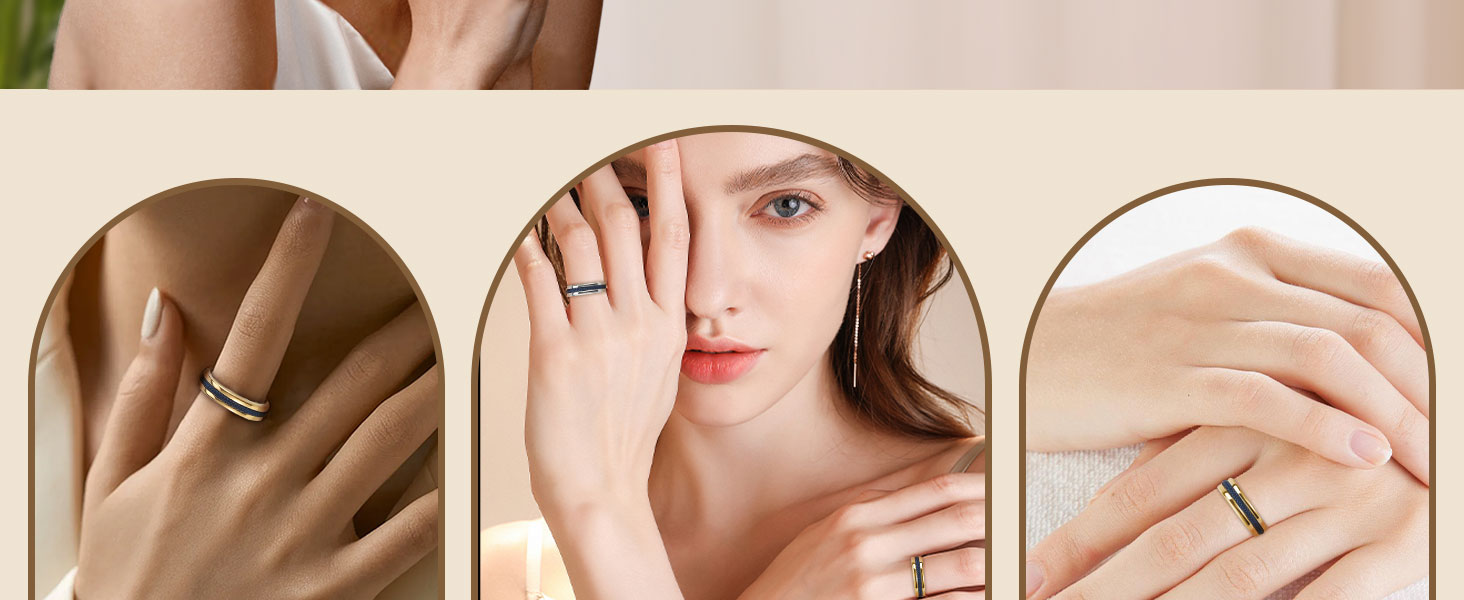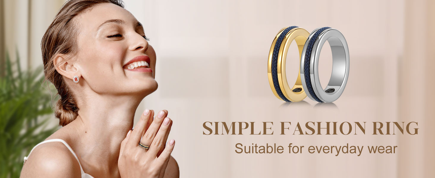 مجموعة ألوان لافتة للنظر: يضيف ترصيع الحبل الأزرق لمسة فريدة من الألوان، مقابل اختيار الذهب اللامع أو الفضة الأنيقة، للحصول على خاتم مميز، ومظهر مميز وجذاب