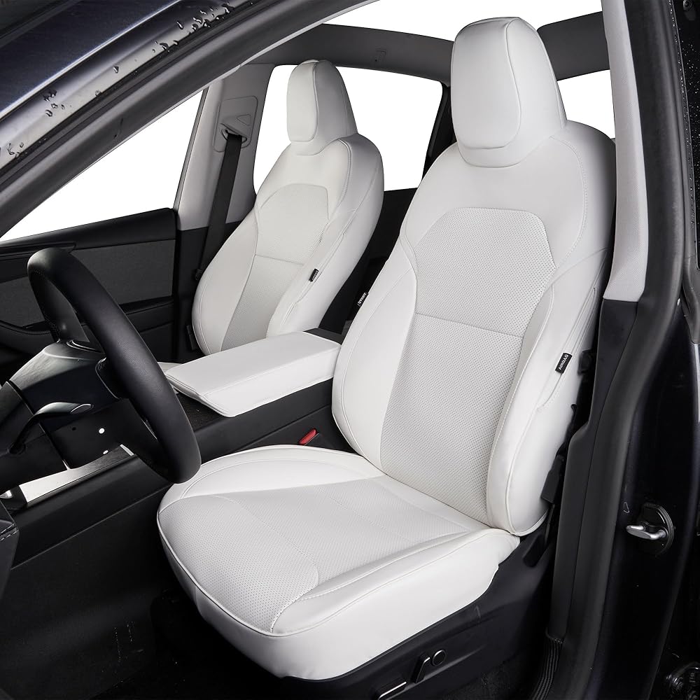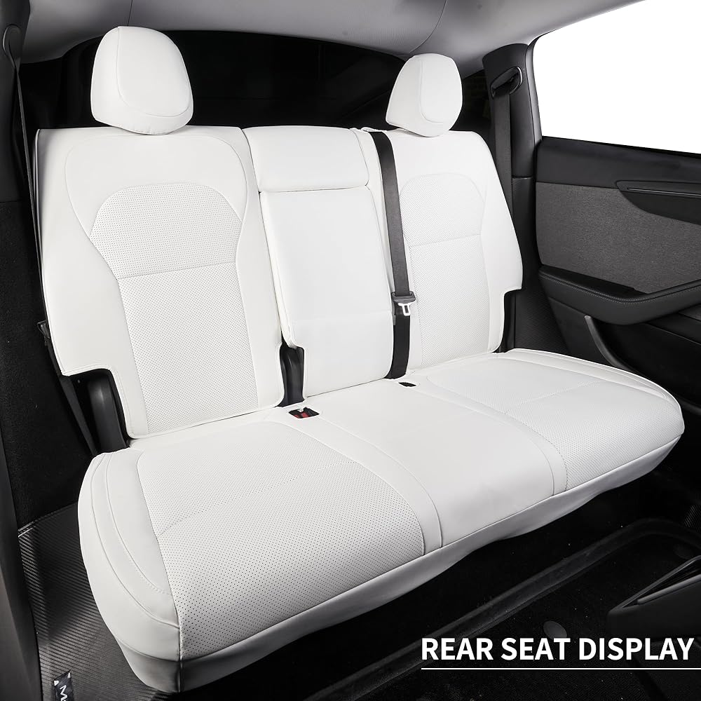 أغطية مقاعد من جلد نابا الأبيض الفاخر لسيارة Tesla Model Y Refreshed Facelift Juniper 2025 2026، مجموعة كاملة مخصصة، وسادة هوائية وحزام الأمان متوافقة، تتضمن أدوات التثبيت - أبيض