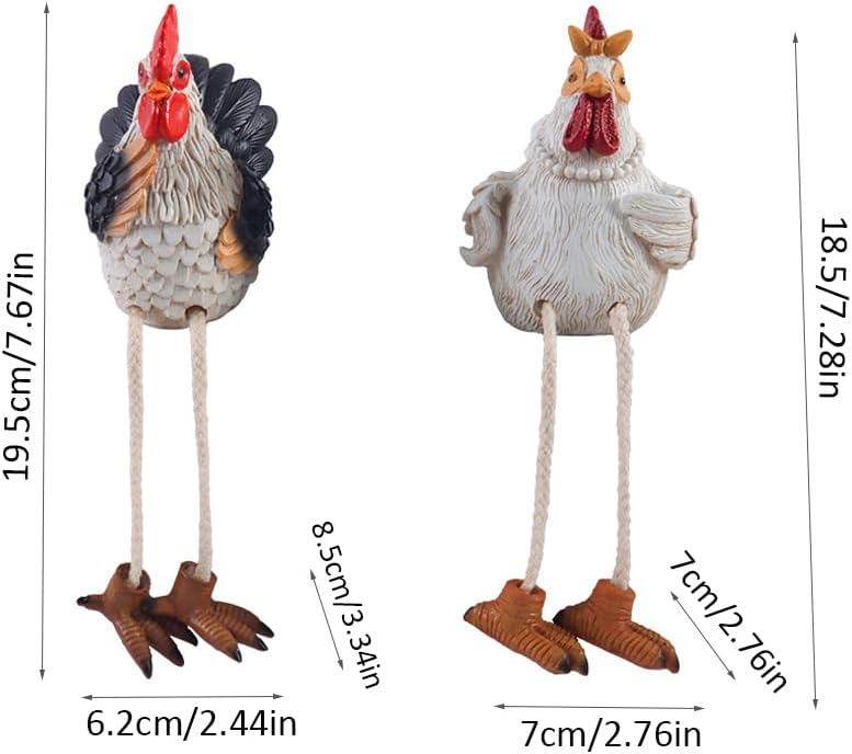 تصميم ساحر وتغليف مدروس: تتضمن العبوة ديكًا واحدًا وتمثالًا واحدًا من الراتنج للدجاجة؛ يبلغ طول كل منها 7 سم، وعرضها 7 سم / 2.76 بوصة، وارتفاعها 18.7 سم / 7.28 بوصة، مع أرجل طويلة تجعلها تبدو رائعة للغاية؛ النمط العتيق يجعلها مثالية كزينة حيوانات رائعة وزخارف جذابة على سطح الطاولة.