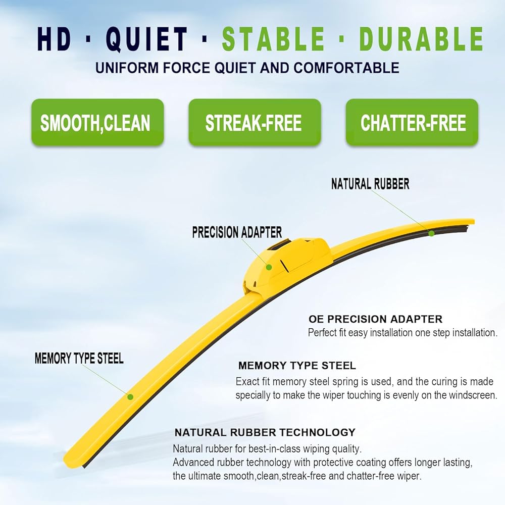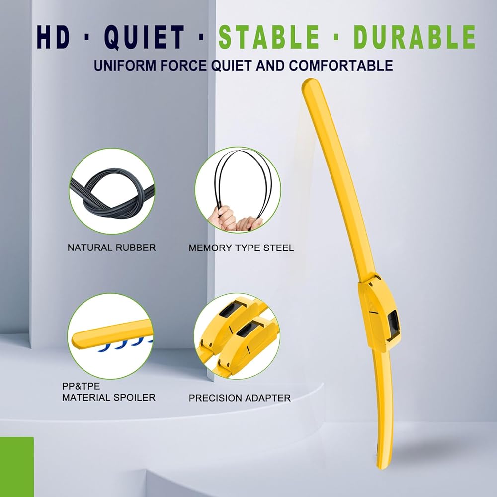 جودة OEM 22 بوصة + 22 بوصة شفرات ممسحة الزجاج الأمامي باللون الأصفر من PARRATI Premium لجميع المواسم (مجموعة من 2)