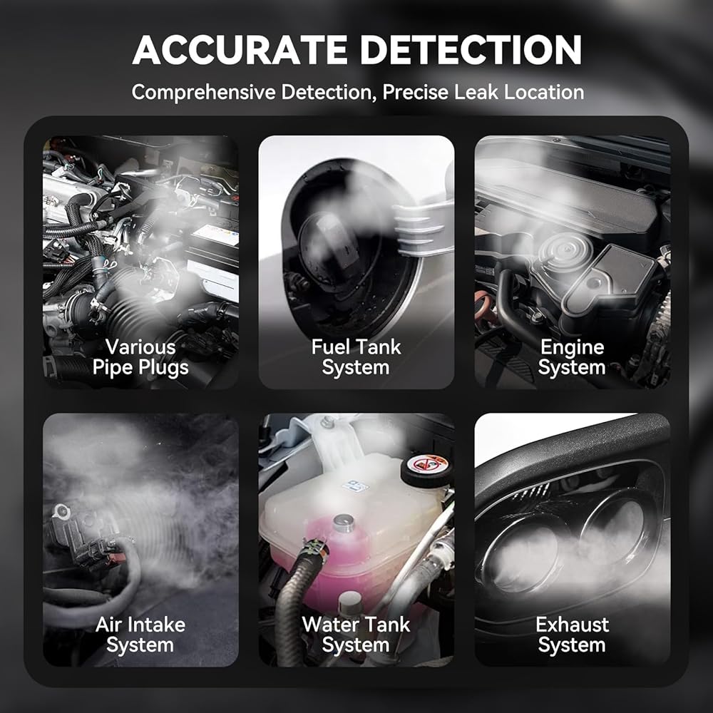 • 【 تشخيص سريع لمدة 10 ثوانٍ】قم بتوليد دخان سميك ومرئي في غضون 10 ثوانٍ من بدء التشغيل، ويخترق خطوط الأنابيب المعقدة لتحديد التسريبات الصغيرة التي يصل حجمها إلى 0.25 مم. تقليل وقت التشخيص بنسبة 50% مقارنة بالطرق التقليدية وتسريع قرارات الإصلاح.