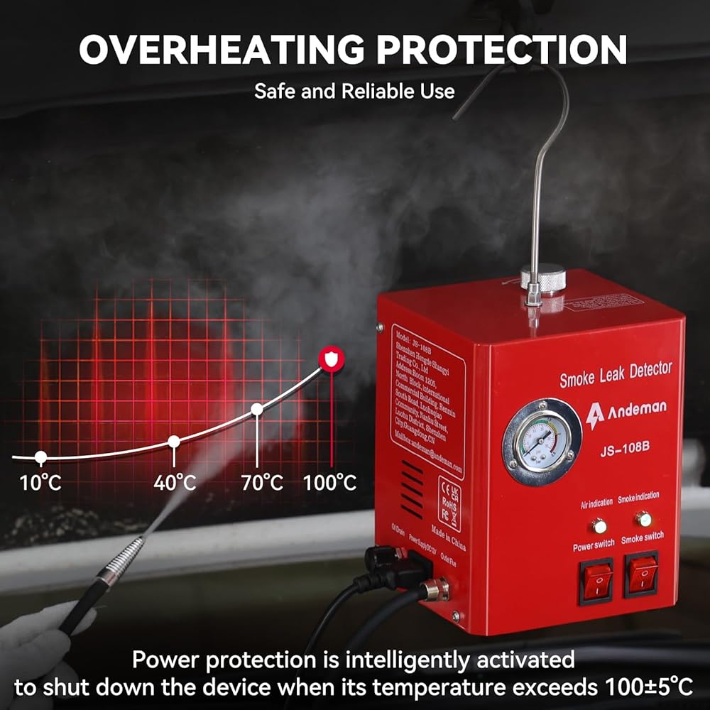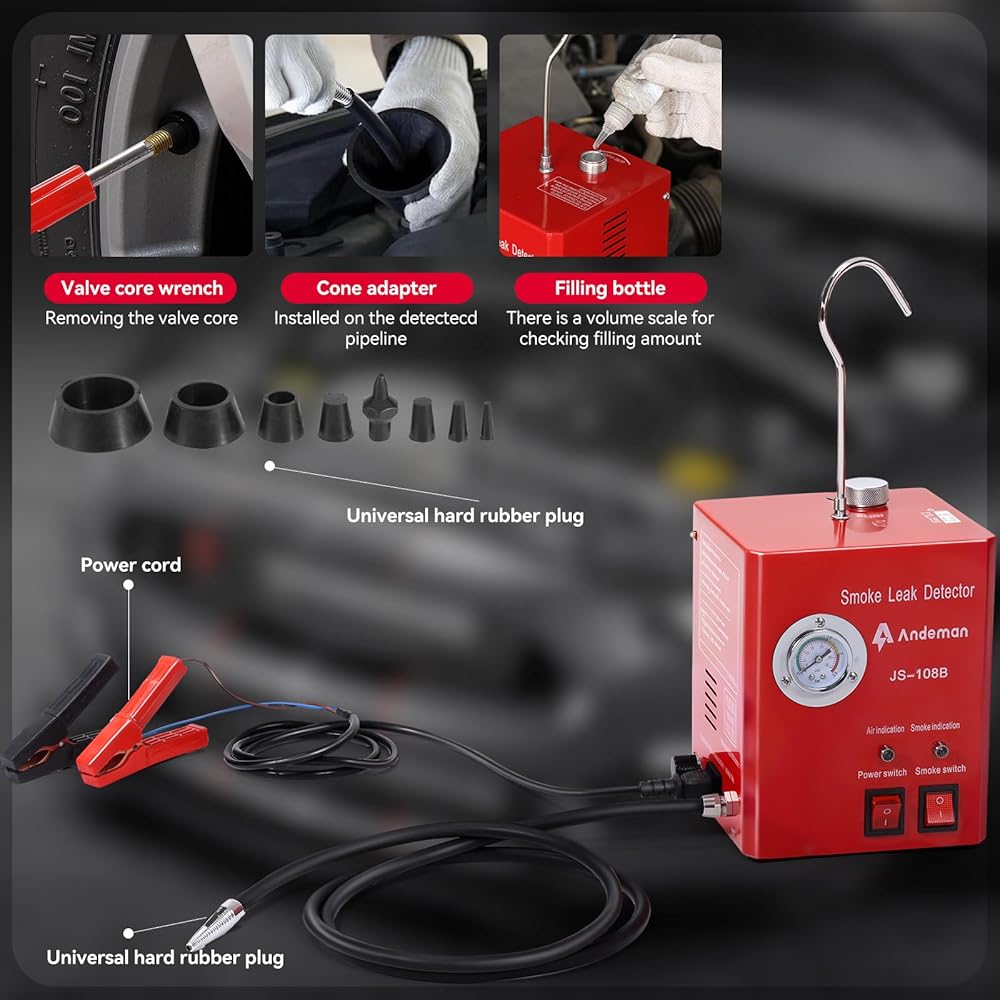 • 【 راحة مضخة هواء مدمجة 】تزيل آلة الدخان القائمة بذاتها الاعتماد على الضواغط الخارجية - ما عليك سوى إضافة 20 مل من زيت الأطفال أو الجلسرين (غير متضمن) لبدء اختبارات التسرب على الفور. مثالي للتشخيص في الموقع لأنظمة EVAP، أو تسربات التوربو، أو مشعبات السحب. يمكنك تقليل وقت الإعداد بنسبة 80% وإجراء الاختبارات في أي مكان، بدءًا من ورش العمل وحتى المواقع البعيدة.