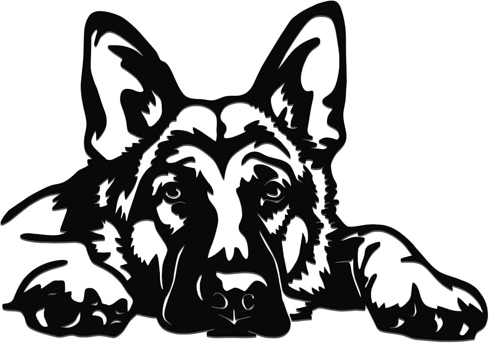 Celebrate the loyalty and beauty of the German Shepherd breed with this stunning metal wall art. The design portrays a relaxed German Shepherd lying down and gazing upward, capturing a moment of calm companionship and intelligent curiosity.