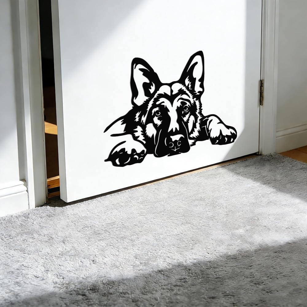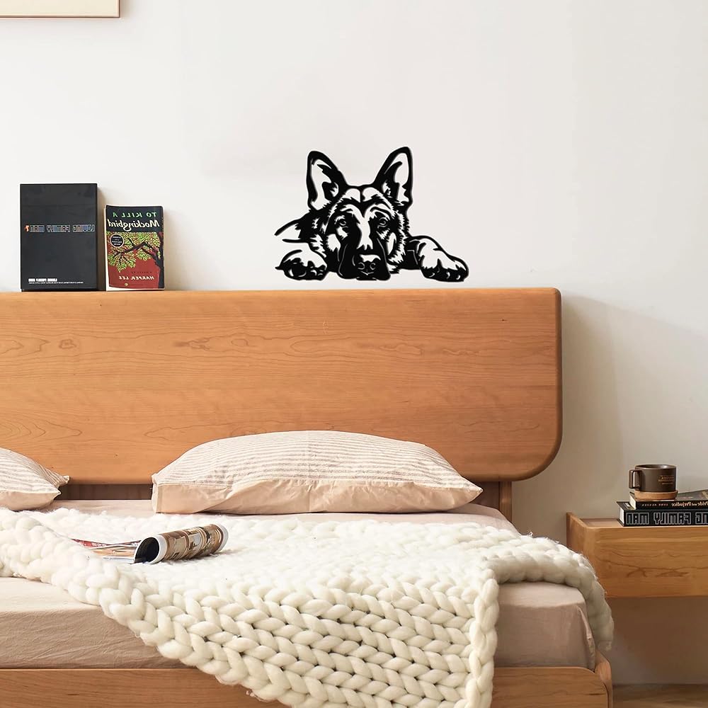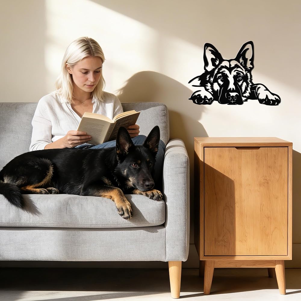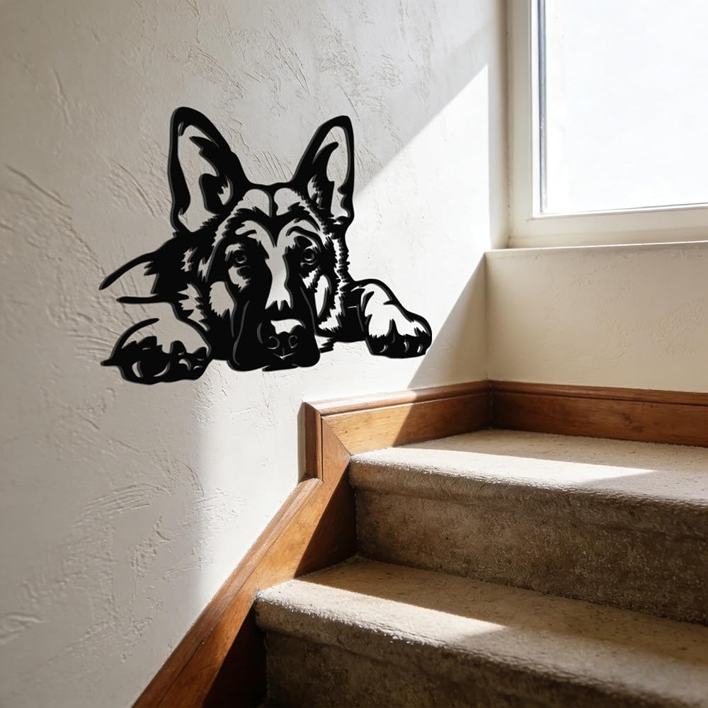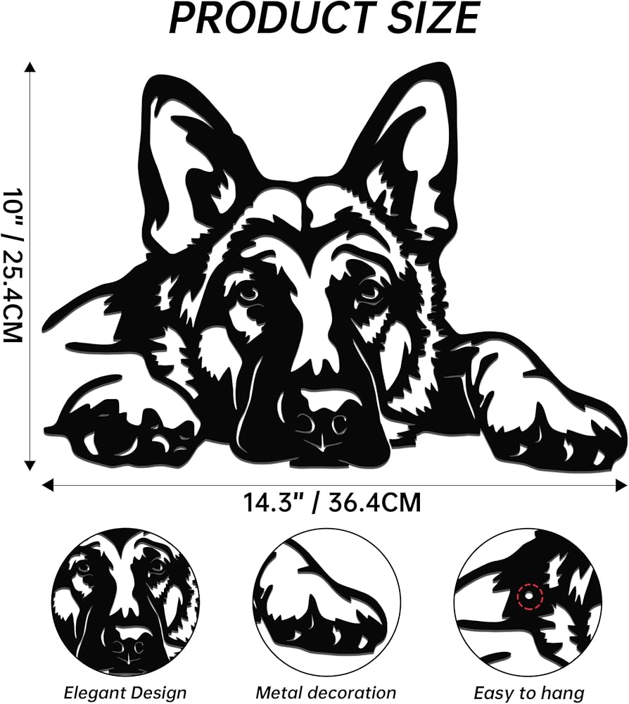 • Lovely German Shepherd Design: This metal wall decor features a beautifully crafted German Shepherd lying down and looking up, capturing the dog's sweet, attentive expression. It instantly adds a touch of warmth and heartfelt charm to your living space.
