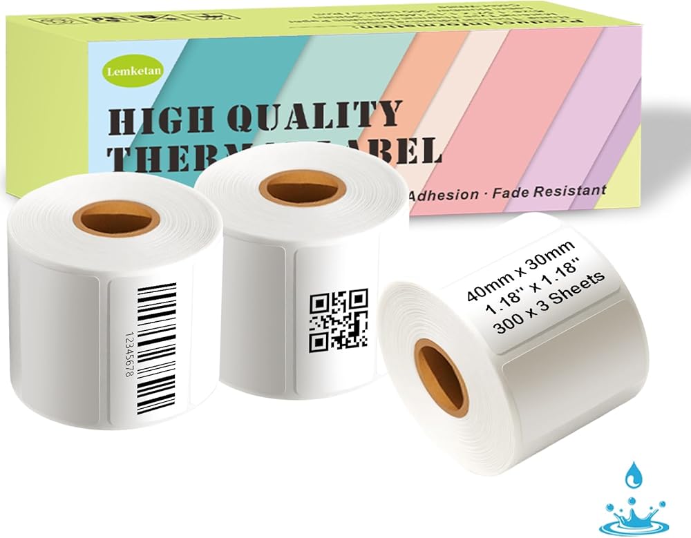 • High Quality&Big Capacity: 3 Rolls High Quality Synthetic Thermal Label: 40x30mm(1.57" x 1.18"), 300 labels / Roll, black on White paper. A greater number of labels, 300 labels in a roll.