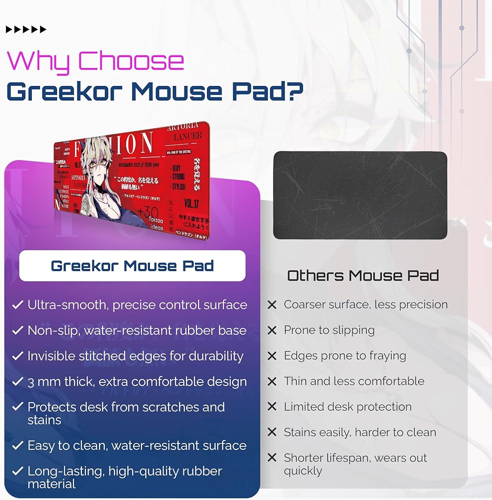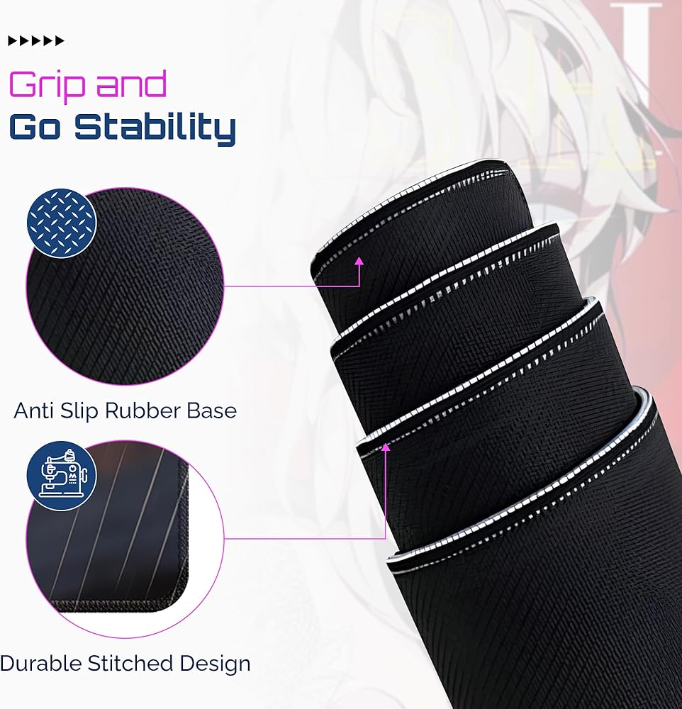 • 【حواف مخيطة غير مرئية من أجل المتانة】 لا تمنع الحواف المخيطة غير المرئية تلف الحواف الناتج عن الاستخدام طويل الأمد فحسب، بل تحافظ أيضًا على المظهر الجمالي لتصميم فتاة الرسوم المتحركة. تساعد هذه الميزة على إطالة عمر لوحة الماوس وتضمن بقاءها جذابة بصريًا مع مرور الوقت.