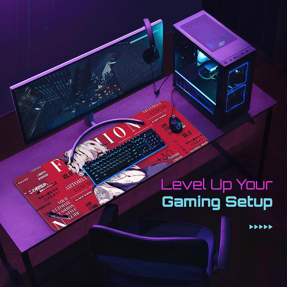 لوحة ماوس ألعاب كبيرة مقاس 31.5 × 11.8 بوصة XXL ممتدة للماوس ولوحة المفاتيح وسطح مقاوم للانزلاق ومقاوم للماء مع تصميم Anime Cute Girl مثالي لدوري الألعاب التنافسية