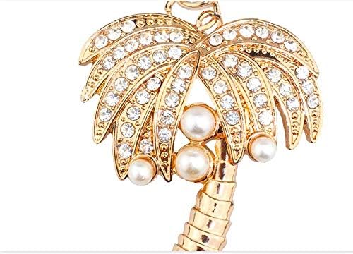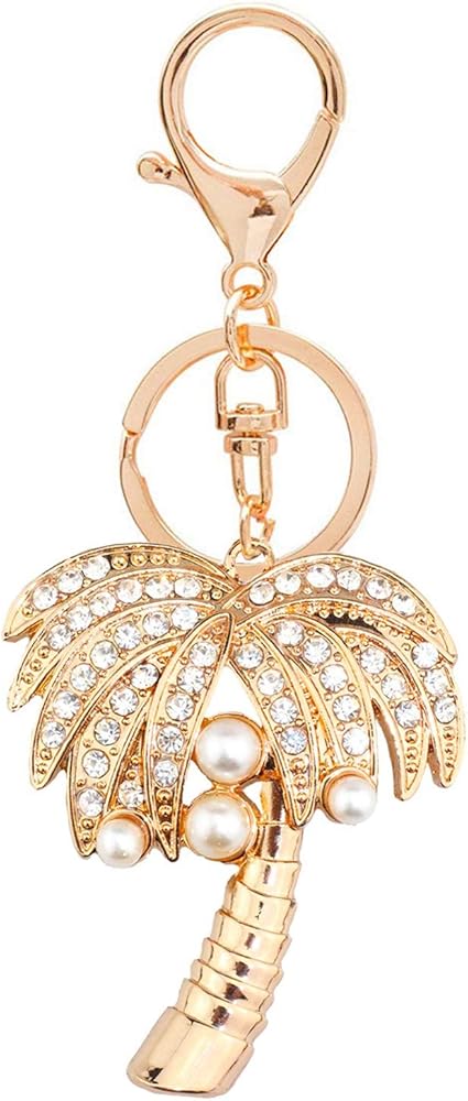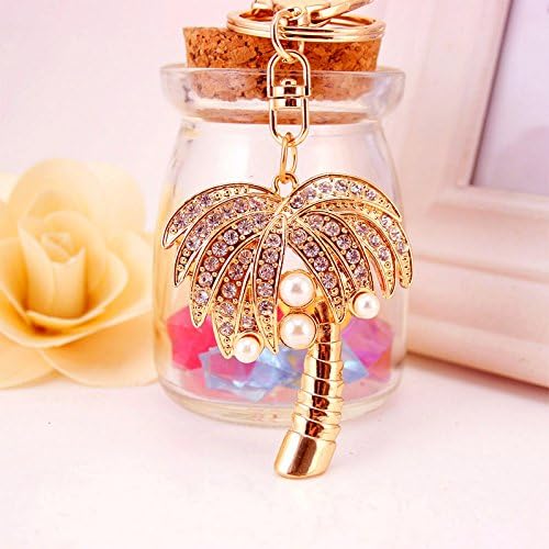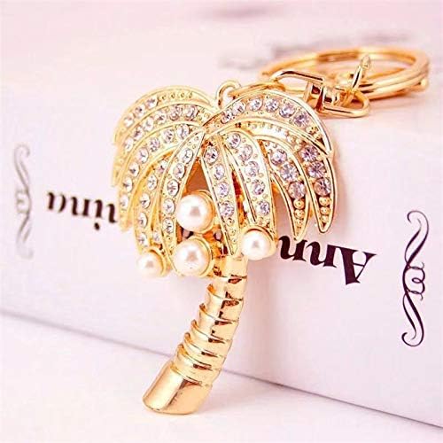 سلسلة مفاتيح Bestdays كريستال حجر الراين واللؤلؤ الاصطناعي وشجرة نخيل جوز الهند (ذهبي)