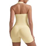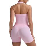 ملابس كاملة ومتناسقة: كمجموعة تدريب متعددة الاستخدامات مكونة من قطعتين للسيدات، توفر هذه المجموعة المطابقة مظهرًا مجمعًا ينتقل بسهولة من صالة الألعاب الرياضية إلى الأنشطة اليومية، مما يوفر كلاً من الوظيفة والأناقة.