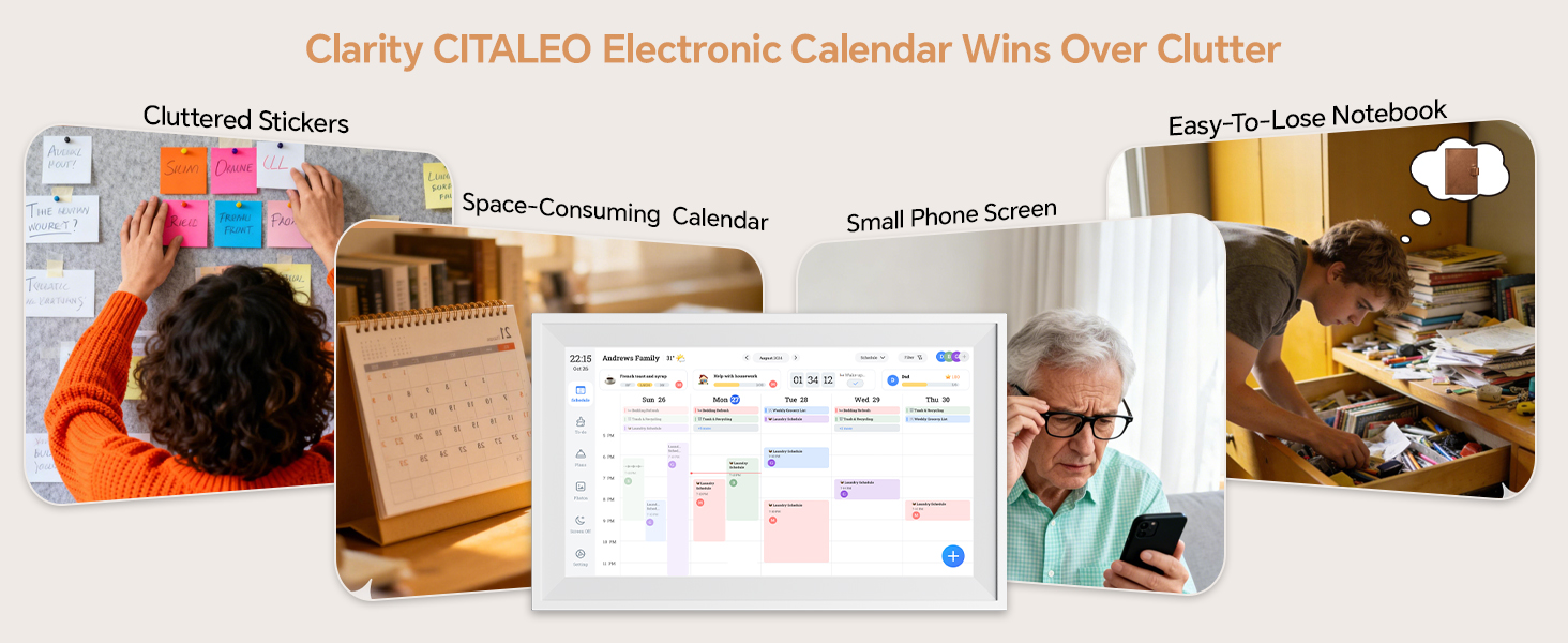 • هدية مثالية للعائلات الحديثة: هدية مثالية للتقويم الذكي المثبت على الحائط للآباء والأزواج والأسر المشغولة. استخدم هاتفك لنشر رسائل عيد الميلاد على الفور على شاشة عرض الحائط الرقمية لتقويم Google، أو تحيات العطلات، أو الملاحظات اليومية مباشرة على شاشة عرض الحائط الكهربائية للتقويم - وهي مفاجأة مدروسة تبقي جميع أفراد العائلة على اتصال ومنظمة في المطبخ أو المكتب أو غرفة المعيشة
