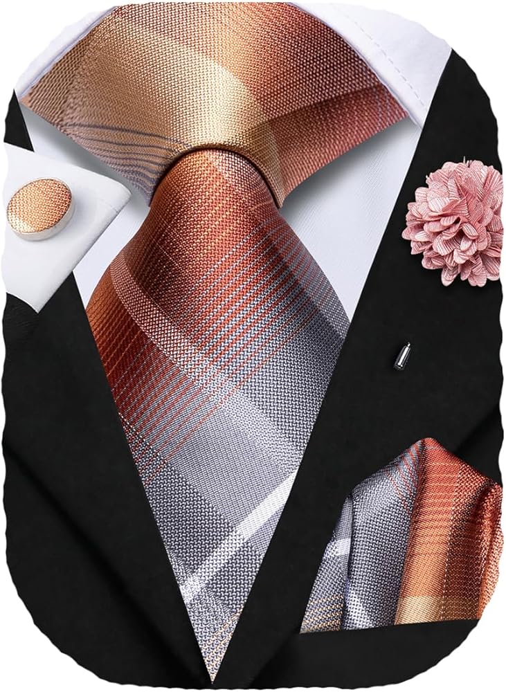 【قيمة رائعة】سوف تحصل على: 1 ربطة عنق + 1 جيب مربع متطابق + 1 دبوس زهرة طية صدر السترة + 1 زوج من أزرار الأكمام + صندوق هدايا