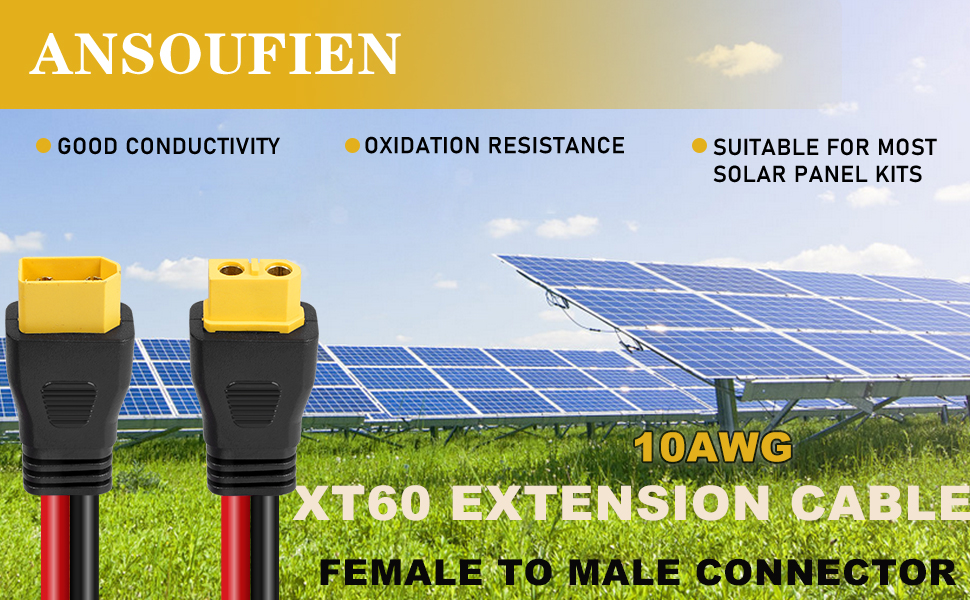 تطبيق واسع: يتم استخدام كابل تمديد xt60 هذا لتوصيل الألواح الشمسية ومولدات الطاقة الشمسية، وهو مناسب لجميع محطات توليد الطاقة الشمسية وحزم البطاريات وأي جهاز مزود بمنفذ XT60.
