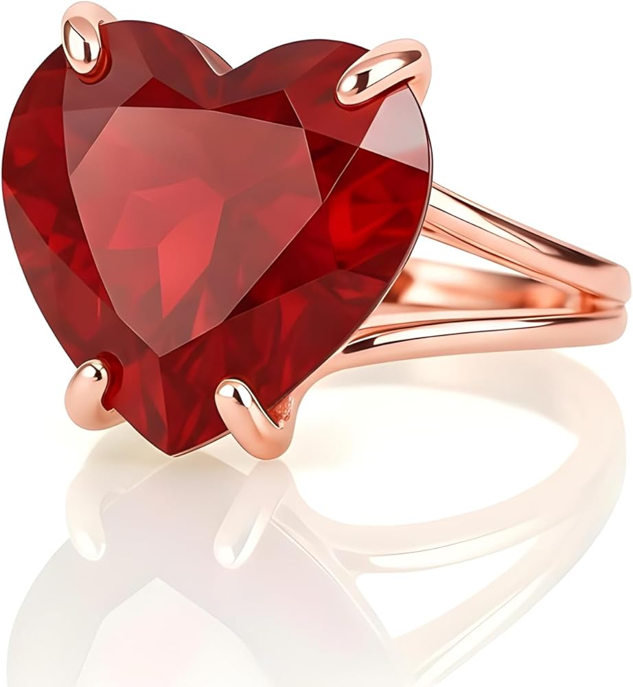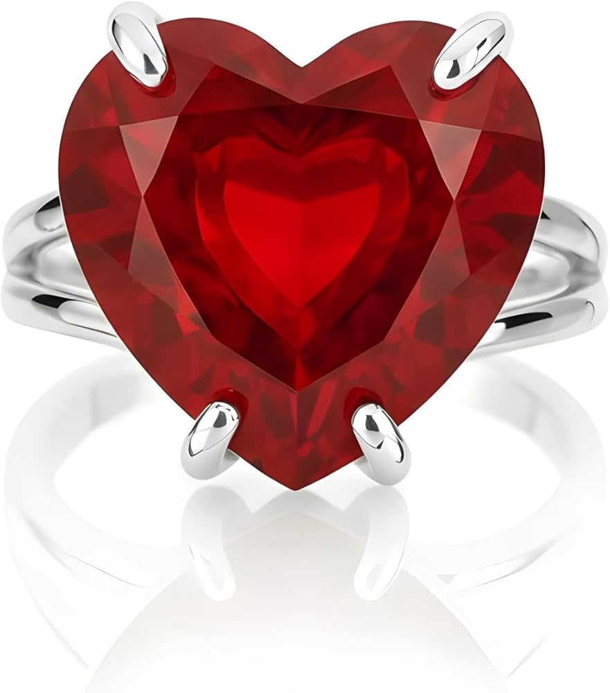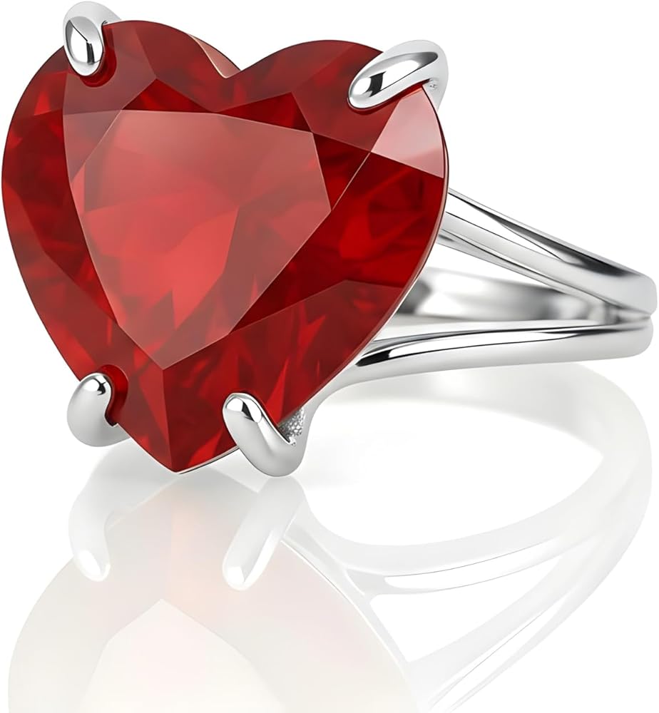 خاتم روبي من الفضة الإسترليني - سوليتير على شكل قلب - مجوهرات حجر بخت شهر يوليو للنساء بالأحجار الكريمة الحمراء
