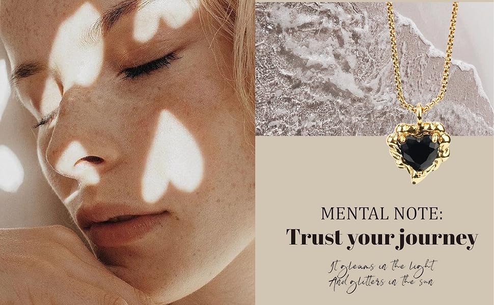 • التصميم الجمالي: التصميم النقي والبسيط يظهر جمالك. يلتف تصميم الكرمة حول القلادة الكريستالية، وتتألق البلورات السوداء في ضوء الشمس.