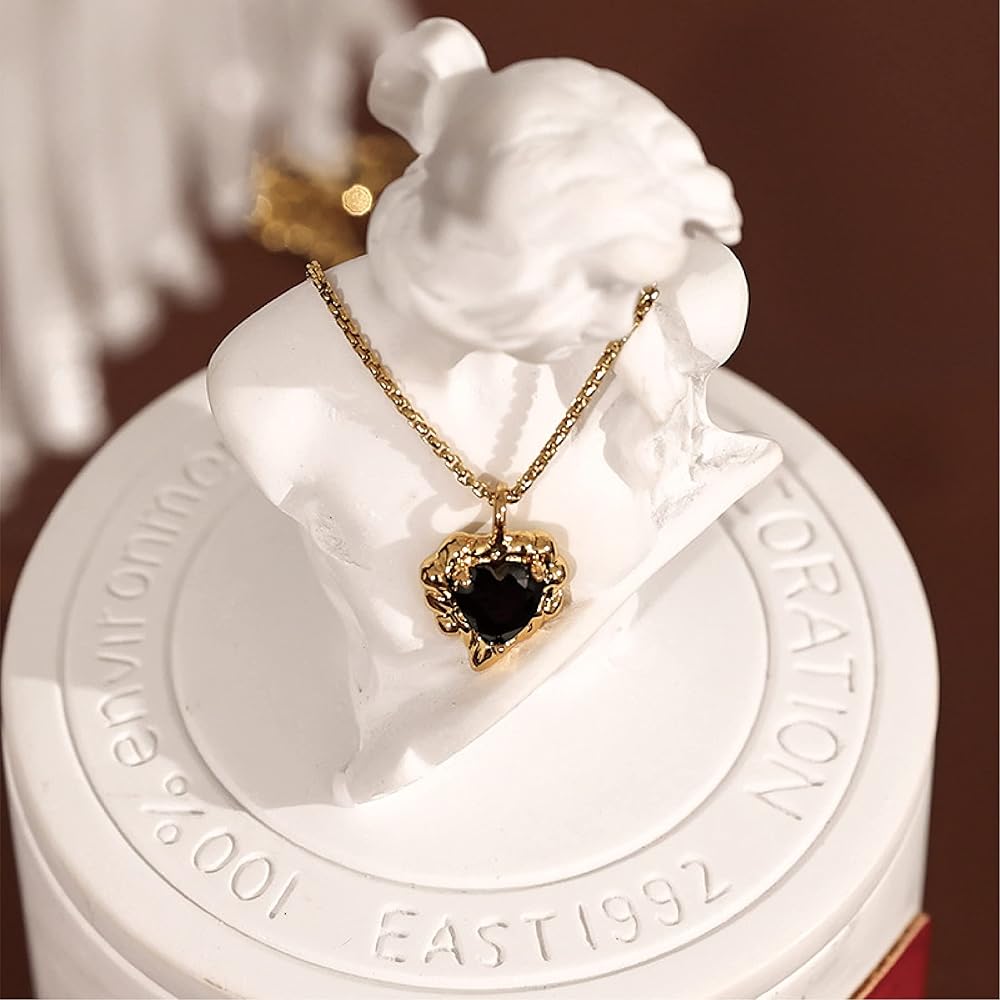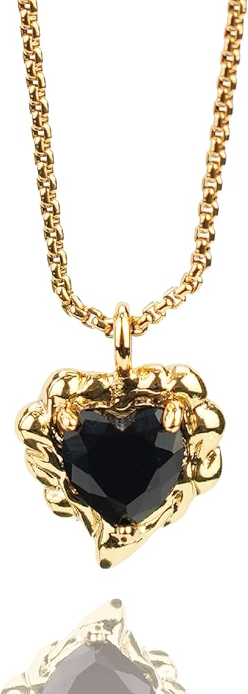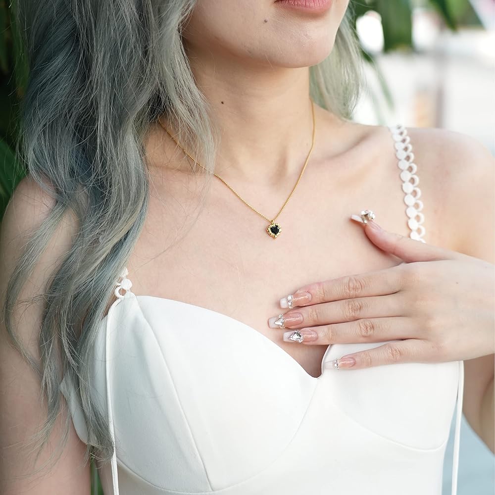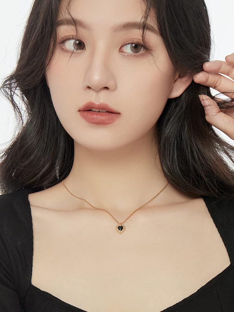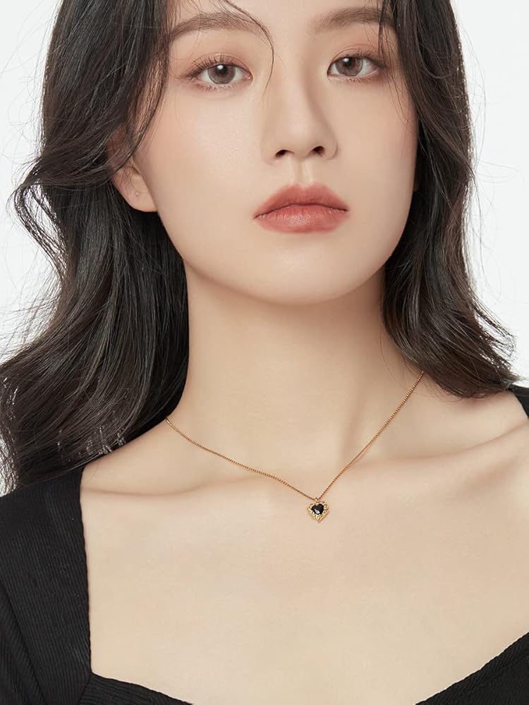 قلادة مصنوعة يدويًا من الذهب عيار 18 قيراط على شكل قلب أسود مكعب زركونيا ألماس مقاس 16 بوصة + 2 بوصة، هدايا ملهمة للنساء والأم والأخت
