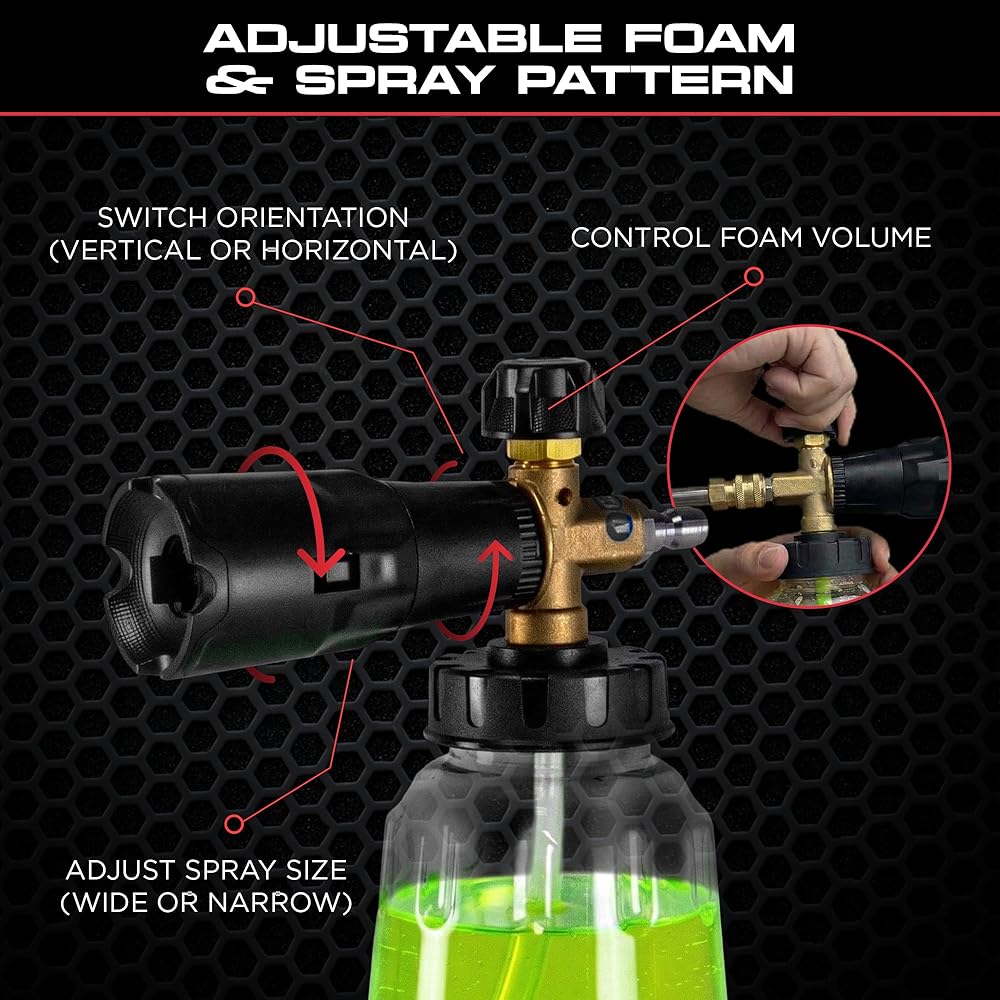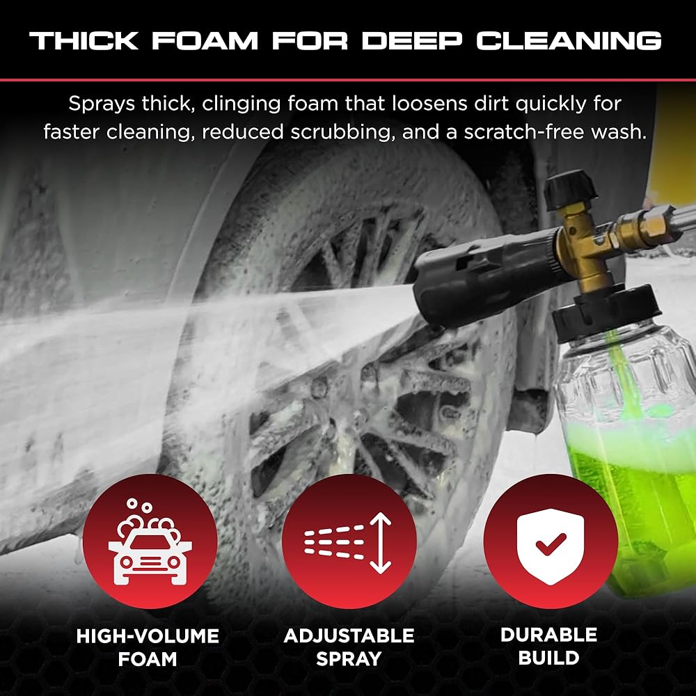 رش رغوة سميكة للتنظيف العميق: يغطي المركبات والأسطح بكمية كبيرة من الرغوة السميكة التي تساعد على تحطيم الأوساخ والأوساخ والحشرات للحصول على تجربة تنظيف أسرع وأكثر فعالية مع جهد بدني أقل.