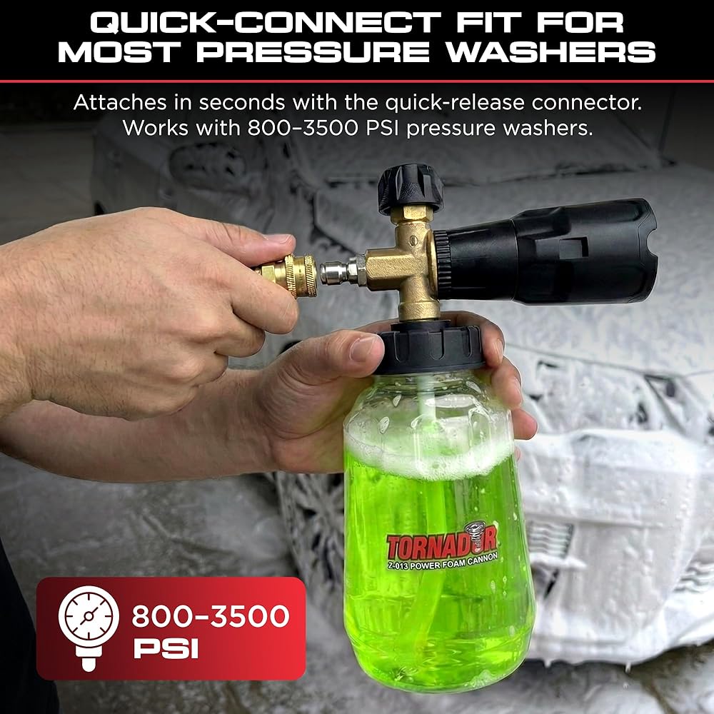 متوافق مع غسالات الضغط: يمكن ربطه بسهولة بغسالة الضغط الخاصة بك باستخدام موصل التحرير السريع ومحول غسالة الضغط. يعمل مع مجموعة واسعة من الوحدات بين 800 رطل لكل بوصة مربعة و3500 رطل لكل بوصة مربعة.