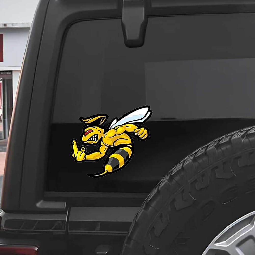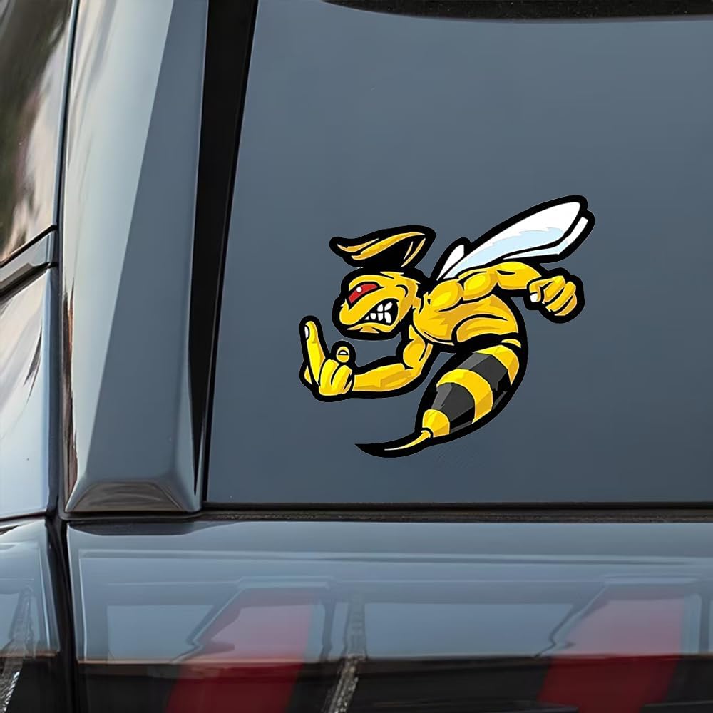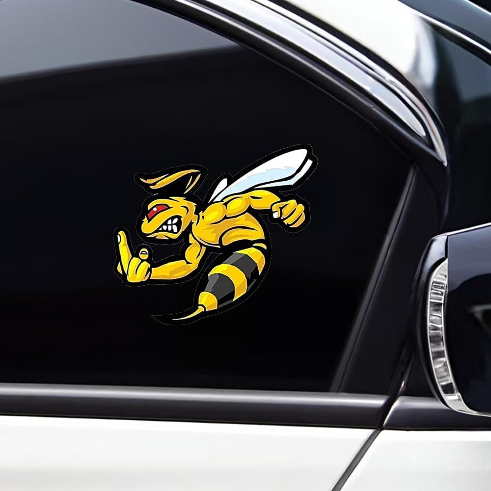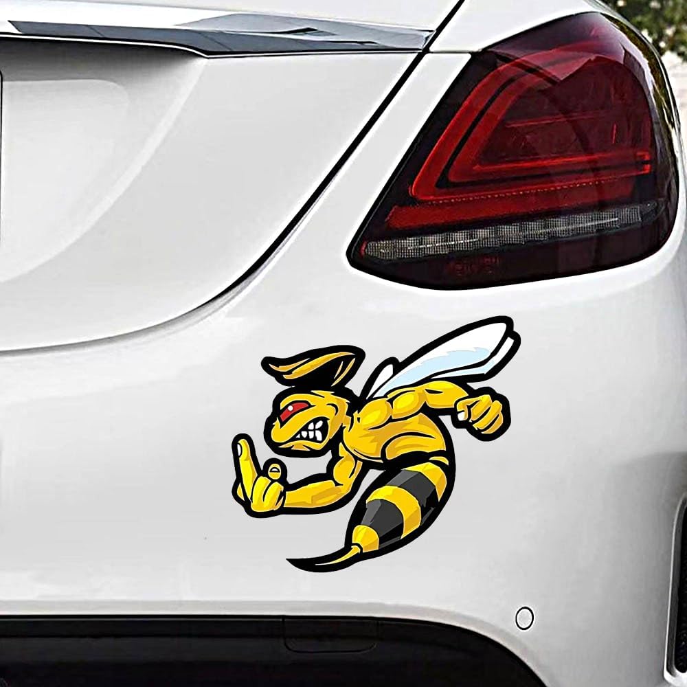 Make a bold statement with this fierce angry bee vinyl decal sticker set! Perfect for personalizing your vehicles, laptops, windows, or walls, this 2-piece set features a striking design of a muscular bee with attitude. The detailed black and yellow artwork shows a determined bee with bold stripes and expressive features, making it an eye-catching decoration wherever you place it. These multi-surface decals are designed to stick firmly while being removable when needed. The versatile size makes them ideal for both small accent decorations and larger statement pieces. Whether you're looking to add some personality to your car's exterior, customize your laptop, or create unique wall art, these high-contrast decals will definitely get noticed. The pack includes two identical stickers, giving you multiple options for placement or allowing you to share with a friend. Add some buzz-worthy style to your belongings with these distinctive angry bee decals!