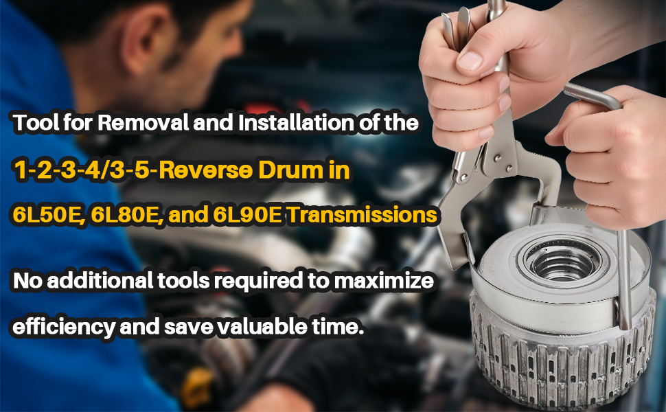 الطرز المطبقة: مصممة لناقلات الحركة GM 6L50E و6L80E و6L90E، تقوم هذه الأداة بإزالة وتثبيت براميل القابض 1-2-3-4 و3-5-Reverse بكفاءة وأمان.
