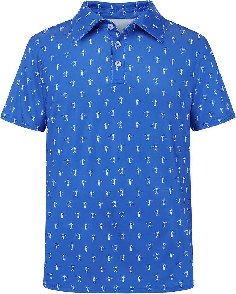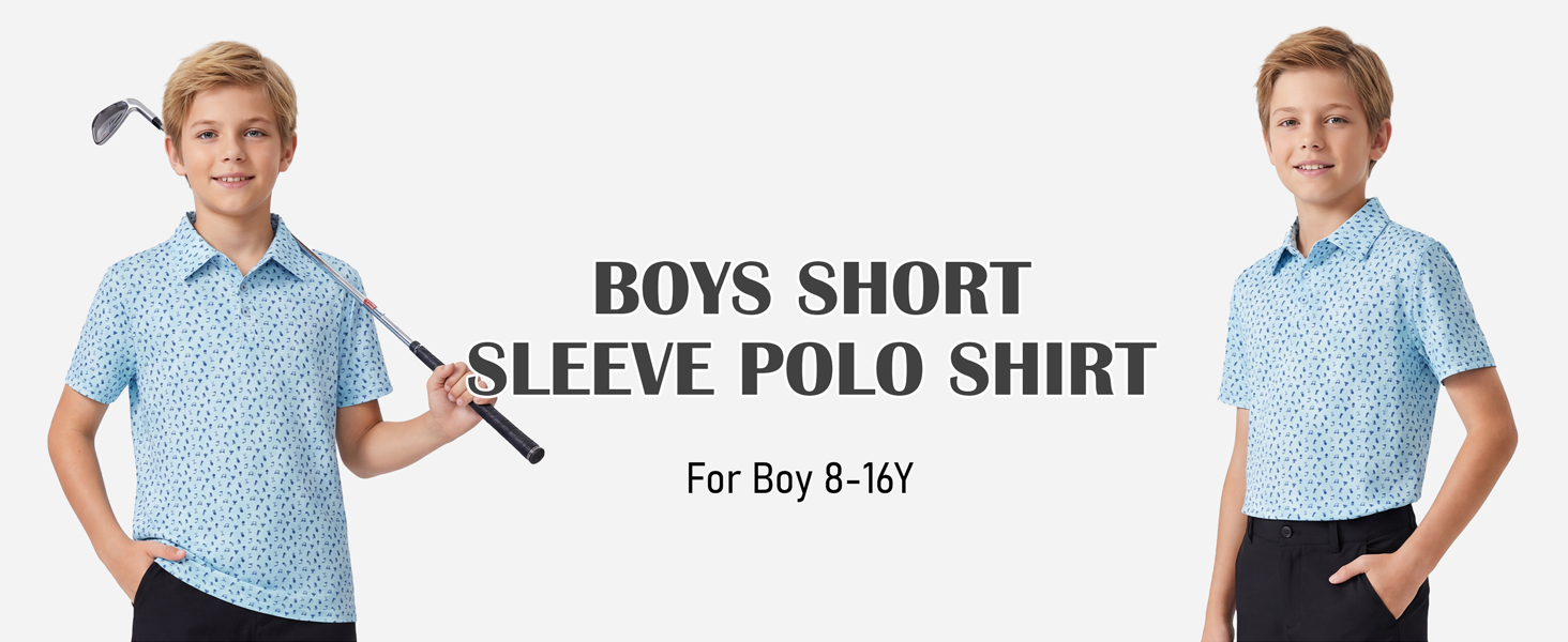 قميص بولو للأولاد بأكمام قصيرة مناسب للجفاف وطباعة الأداء، قمصان جولف Cuaual Active للأولاد من عمر 8 إلى 16 سنة in Kuwait