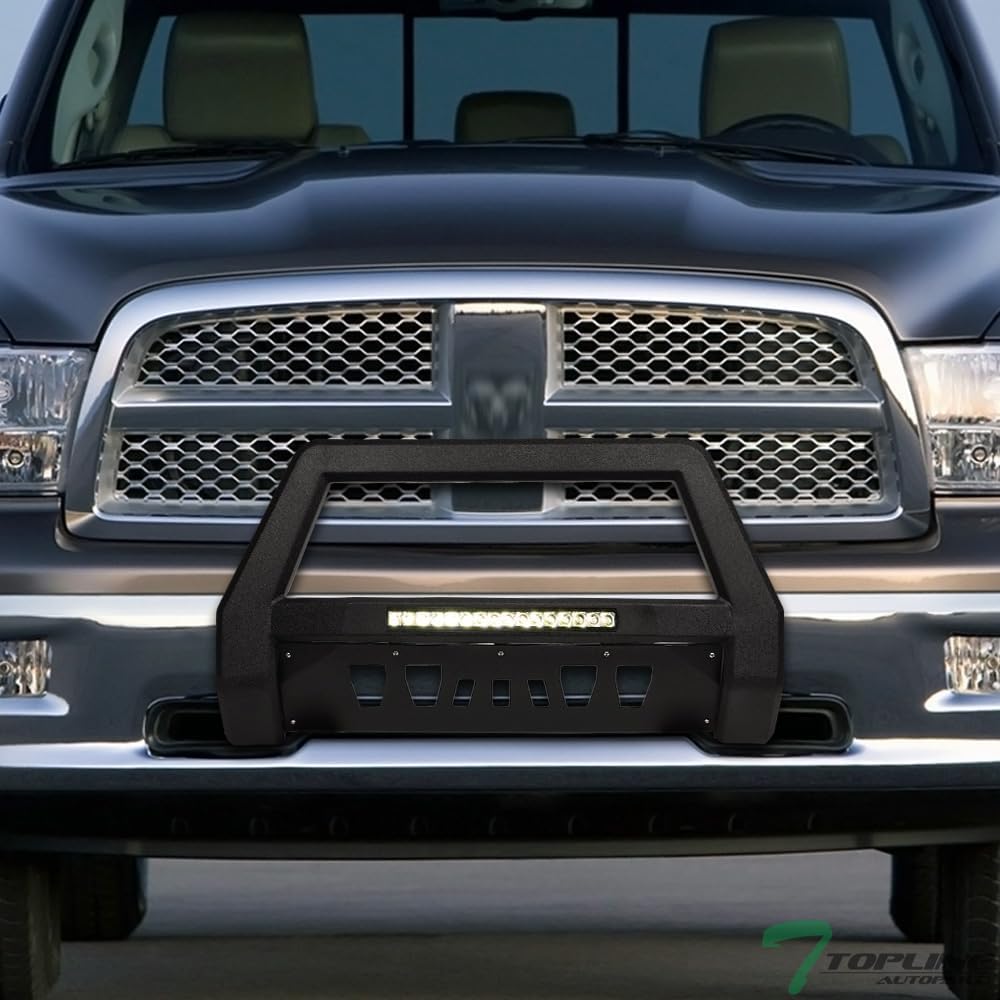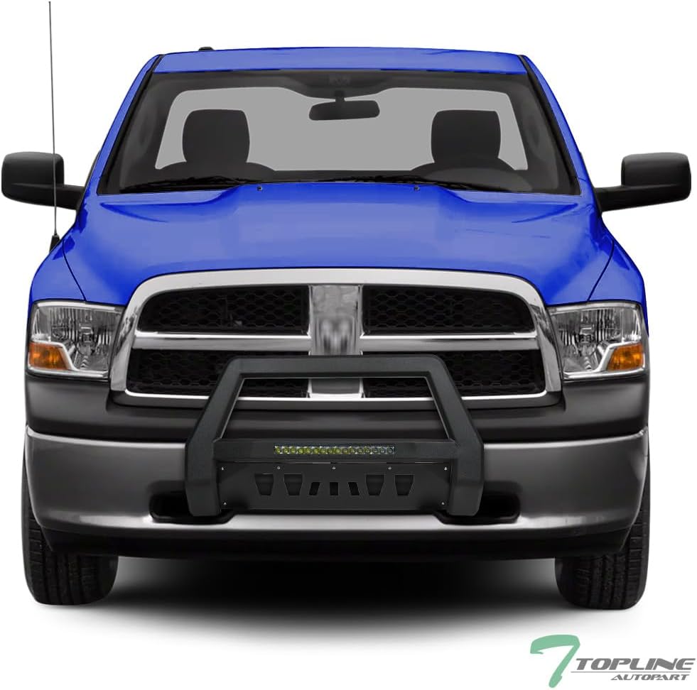 واقي قضيب الثور LED خفيف الوزن باللون الأسود مع لوحة انزلاقية متوافق مع 2009-2018 دودج رام 1500/2019-2024 كلاسيك