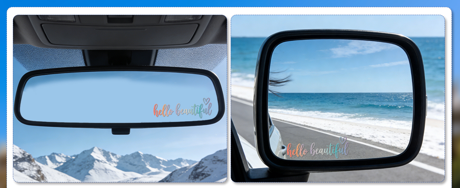 سهل الاستخدام: الملصق بسيط ومريح في التركيب، ولا يتطلب أي خطوات معقدة. ما عليك سوى الحفاظ على سطح مرآة الرؤية الخلفية جافًا ونظيفًا، ثم قم بتقشير الجزء الخلفي، ثم ضع الملصق بسلاسة على المرآة، واضغط بقوة، وأخيرًا قم بإزالة فيلم النقل