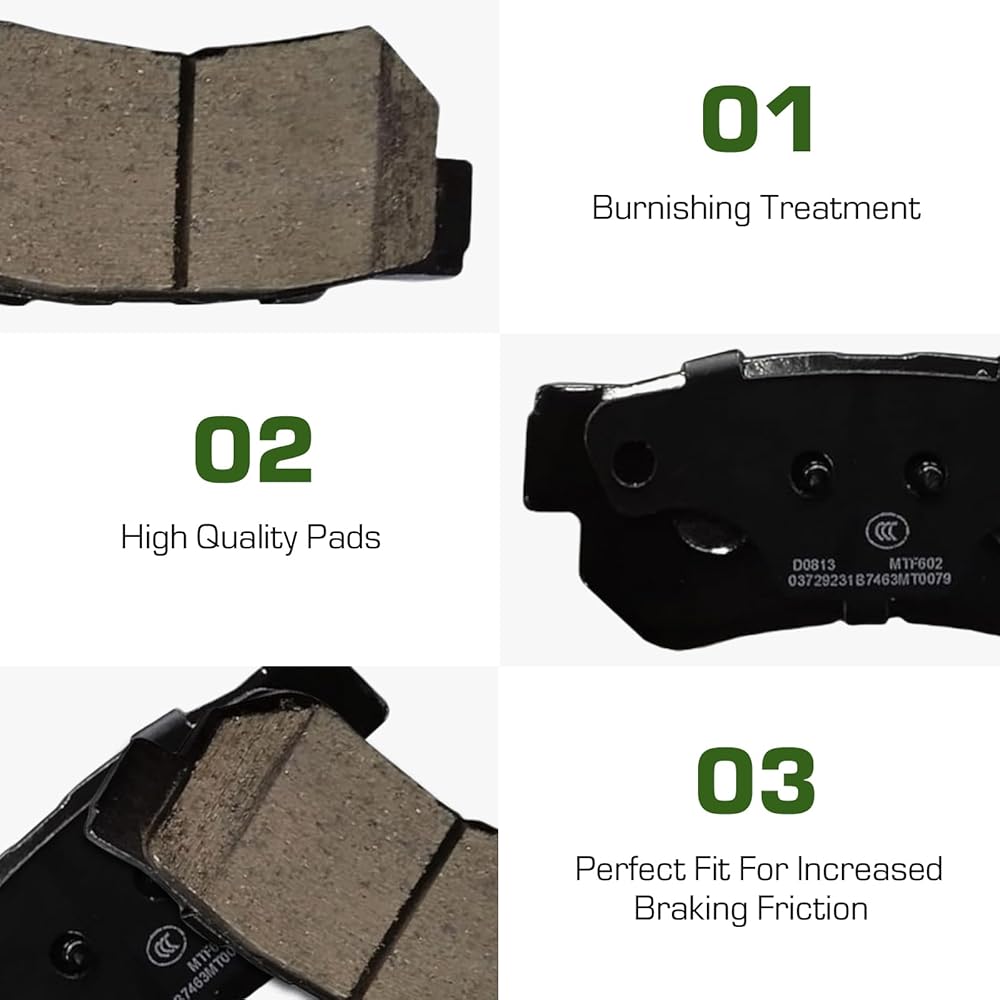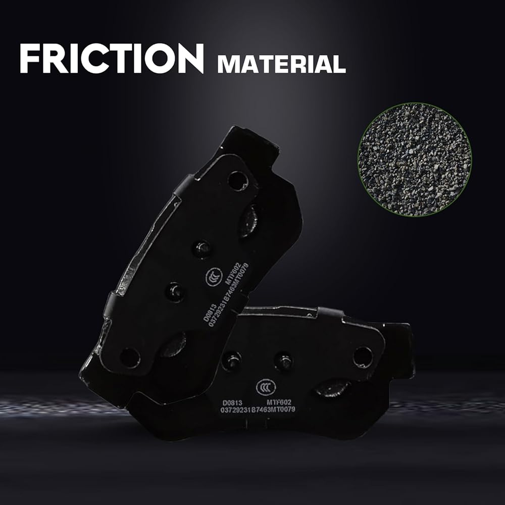 【PRECISE FIT WITH CHAMFERS】 - Our rear pads are meticulously crafted to seamlessly match brake rotors, preventing any damage to the rotors and eliminating abnormal sounds. This design promotes a longer lifespan, ensuring both optimal performance and durability.