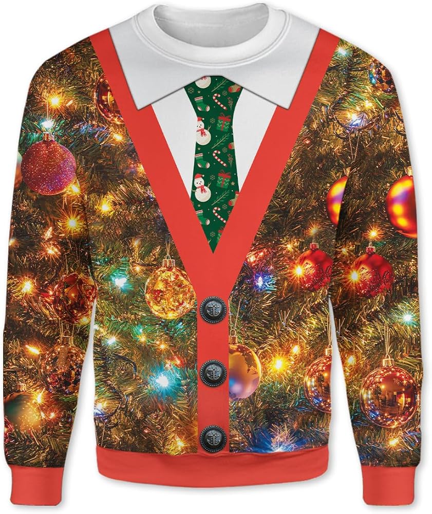 جودة عالية: قمصاننا الصوفية المطبوعة بالكامل بنمط الحياكة هي سترة عيد الميلاد القبيحة المزيفة، وليست سترة. للحصول على أقصى درجات الراحة، يتكون هذا السويت شيرت من مادة البوليستر المسامية.