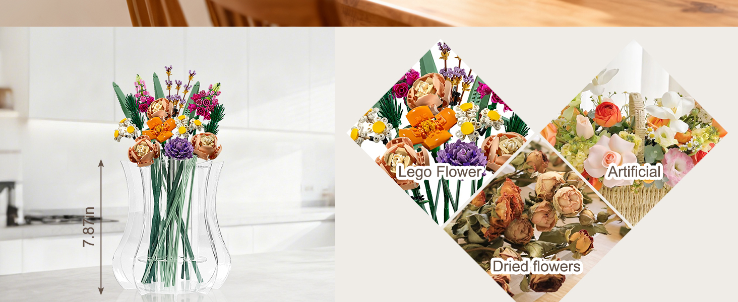 الرفيق المثالي لباقات ليغو الخاصة بك! مصنوعة من 12 لوحة أكريليك، مزهرية زهور الليغو هذه سهلة التجميع بشكل لا يصدق - لا تحتاج إلى خبرة. هدية مثالية لهواة جمع ألعاب Lego والأطفال المبدعين على حدٍ سواء.