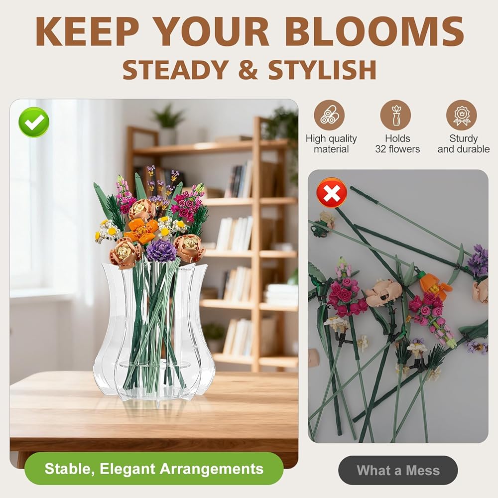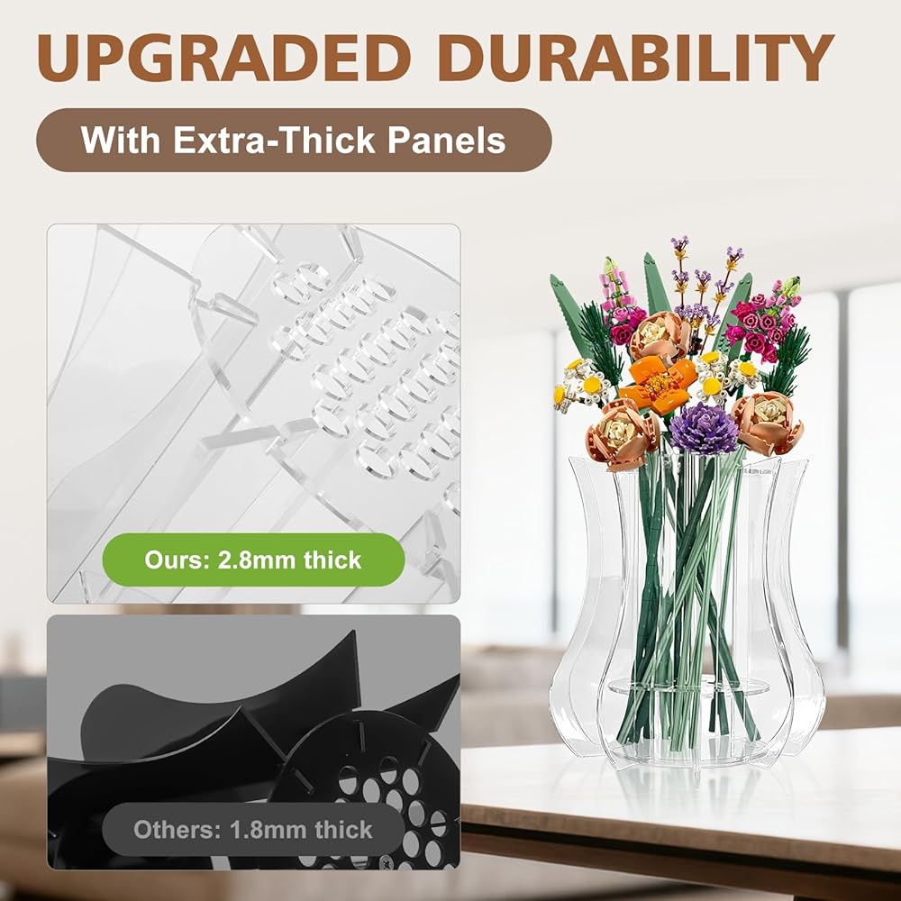 متانة مطورة بألواح سميكة للغاية. في حين أن مزهريات الأكريليك القياسية تستخدم صفائح هشة مقاس 1 مم، فإن مزهرية باقة زهور ليغو الخاصة بنا تتميز بألواح متينة مقاس 2.5 مم مصممة لتحمل التجميع والتفكيك المتكرر دون تشقق أو تلف. بنيت لتدوم.