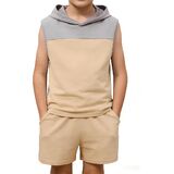 ميزات التصميم العصري والمريح: تتميز مجموعات ملابس الأولاد هذه بقميص أمامي بغطاء للرأس وزوج من السراويل القصيرة ذات الخصر المطاطي. يوفر هذا المزيج مظهرًا عصريًا وعمليًا، مما يجعله ملابس مثالية للأولاد للمدرسة أو العطلات أو مغامرات نهاية الأسبوع.