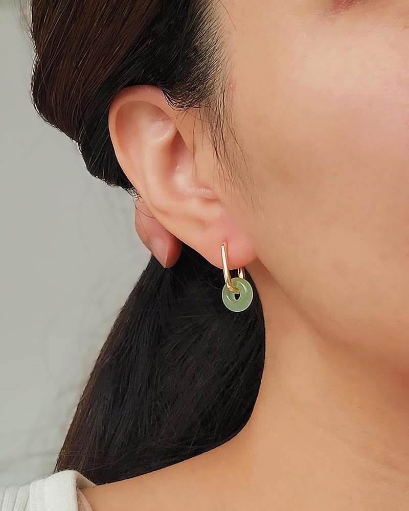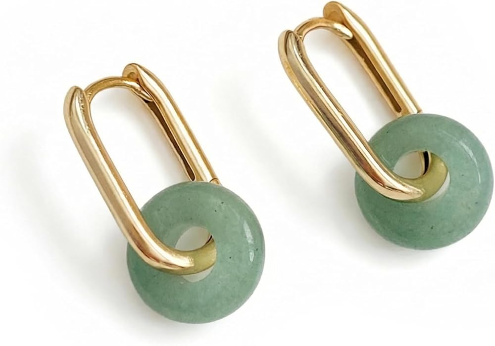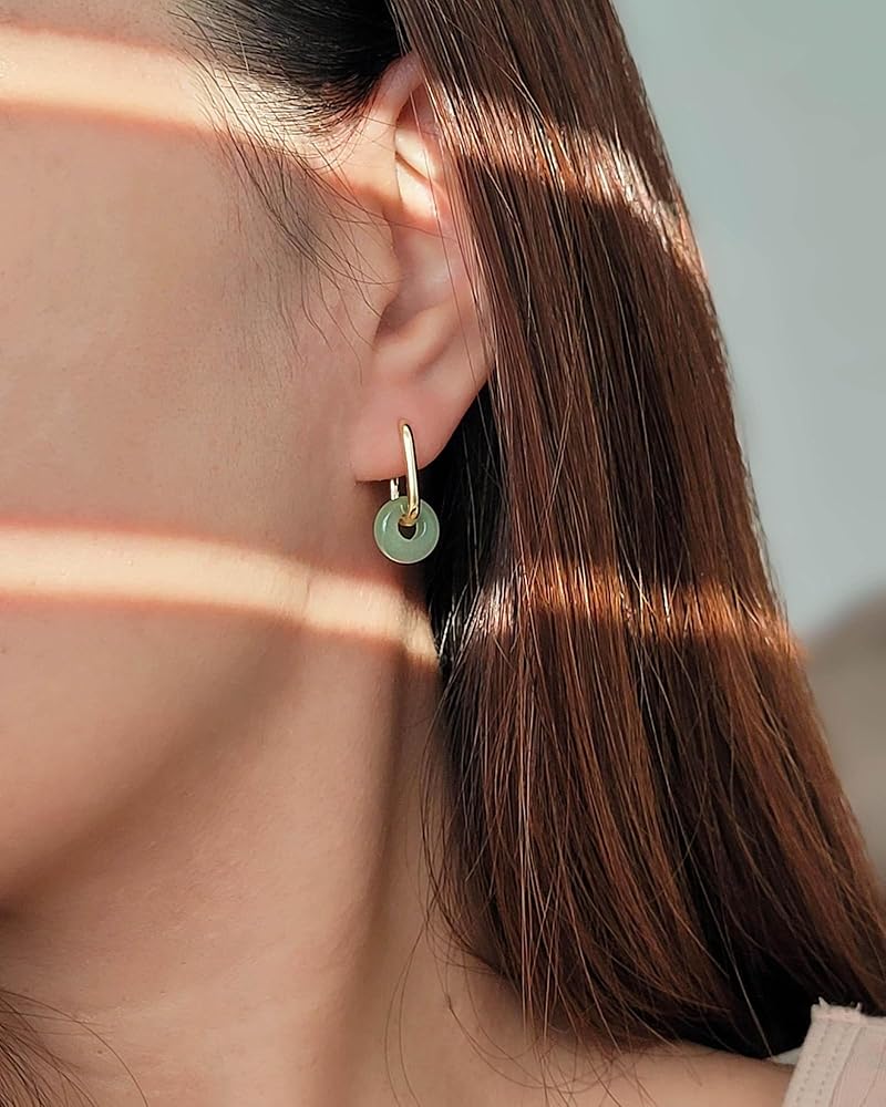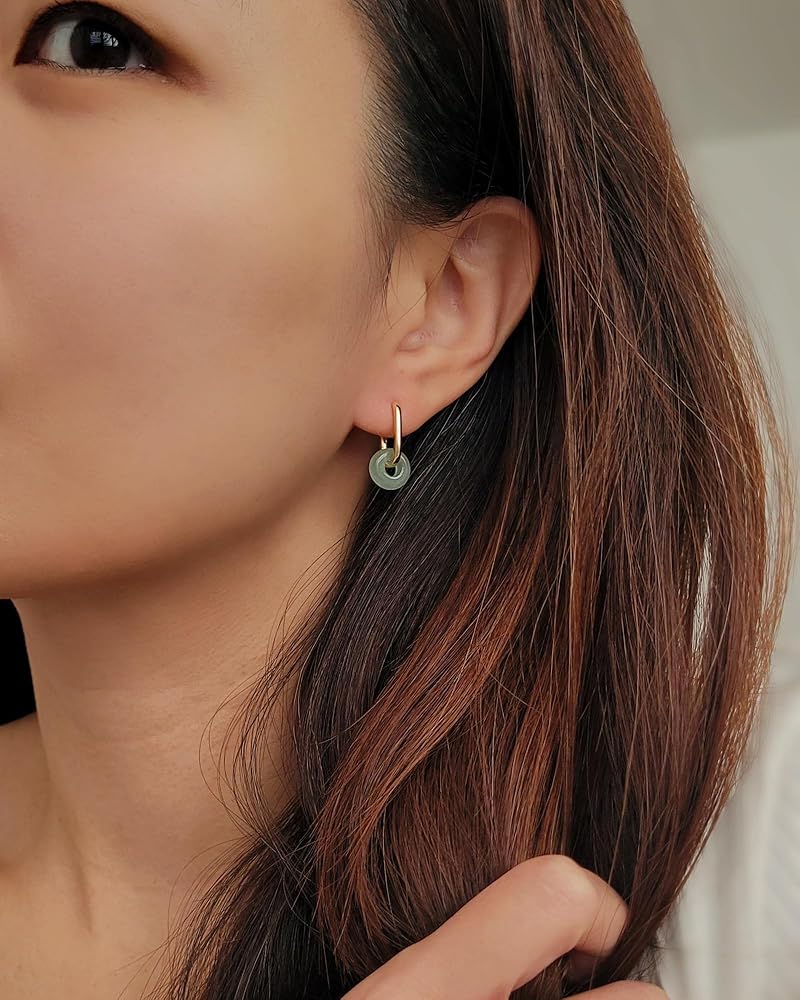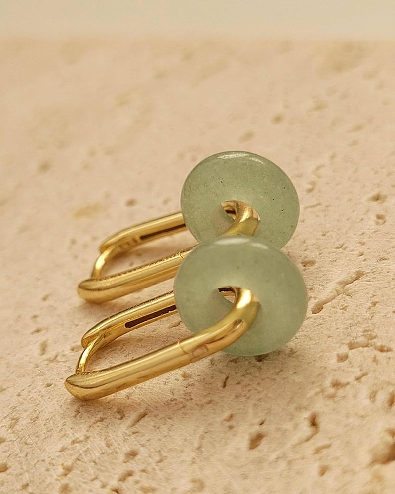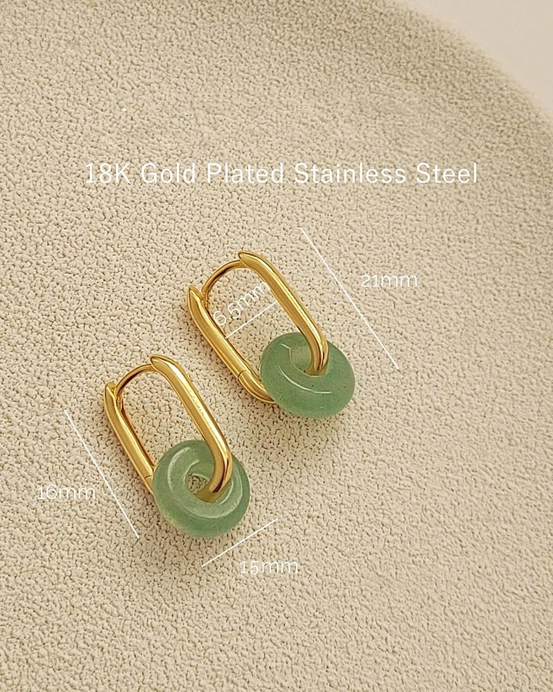 • Material: Green jade paired with 18K gold plated stainless steel, hypoallergenic and smooth, offering jade earrings that feel easy for daily wear