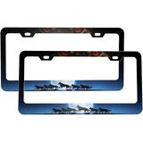Our decorative license plate frames are made of aluminum that withstands most weather conditions, resists deformation, and maintains their beautiful appearance for a long time with proper care.