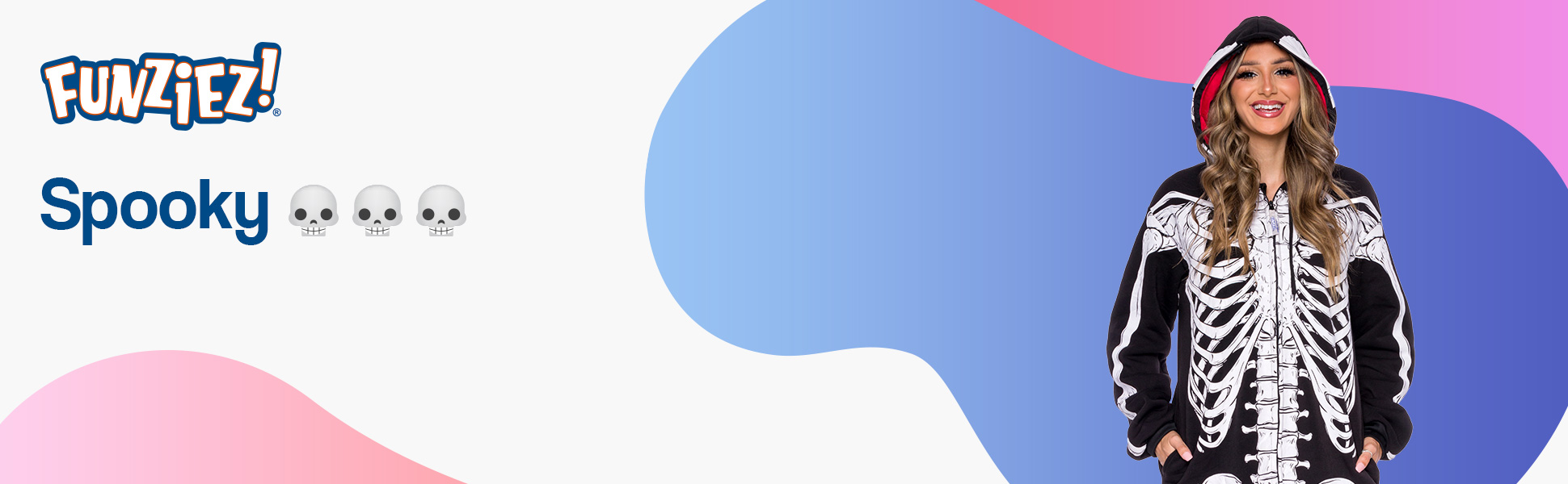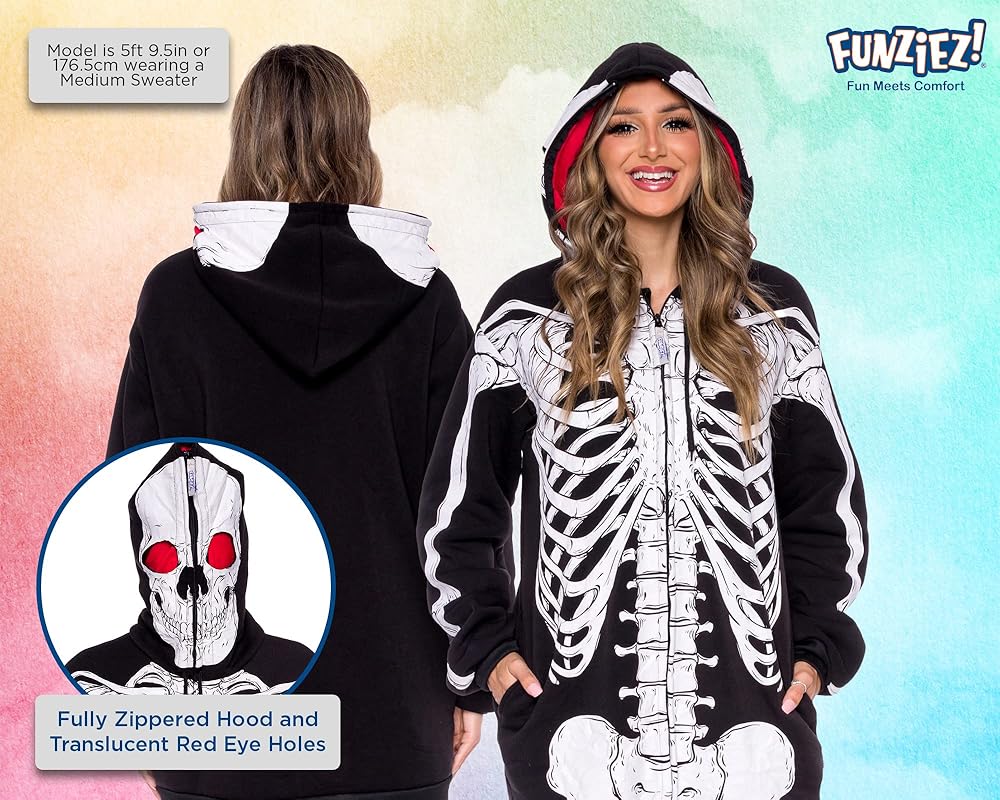 سترات الهالوين الممتعة، أزياء اليقطين والهيكل العظمي، سترات بقلنسوة للبالغين للنساء والرجال من FUNZIEZ!