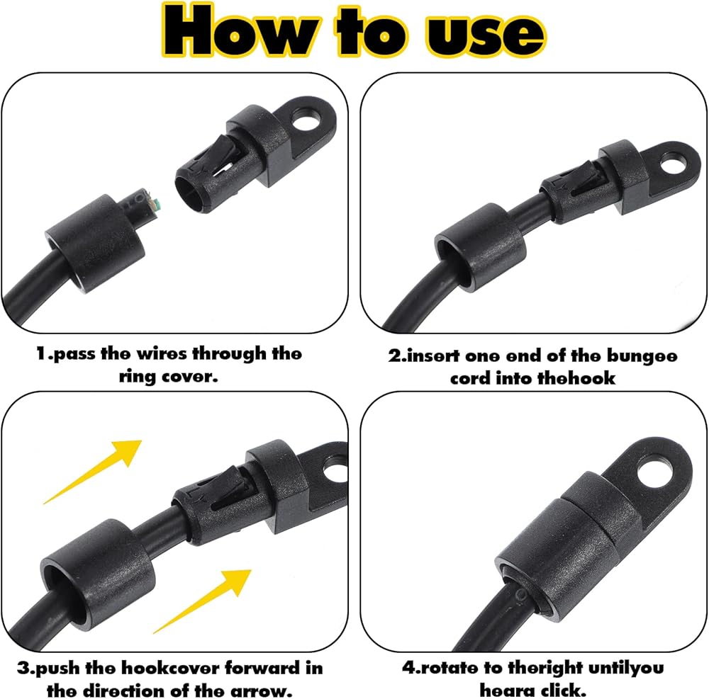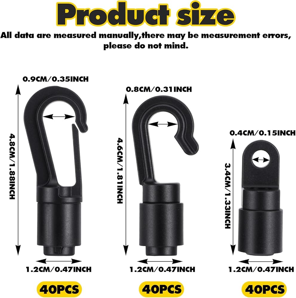 Ideal for securing loads on kayak cord hooks and other marine craft, as well as for general use in camping gear hooks and outdoor equipment. These bungee shock cord hooks can also be employed for organizing gear in garages or during transportation