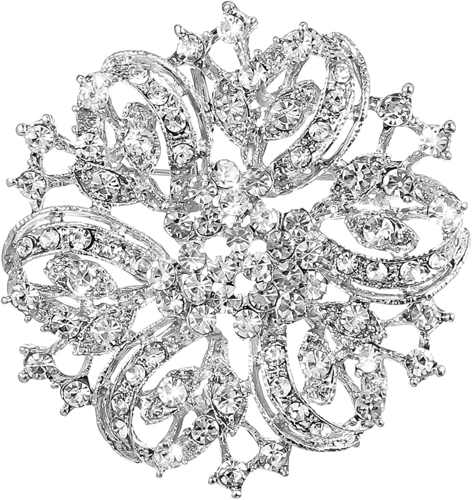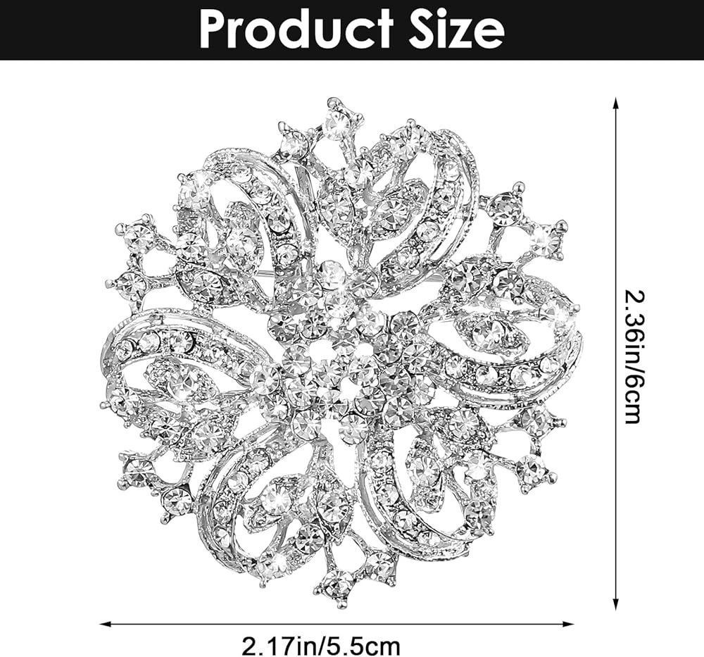 • Premium Materials: This rhinestone brooch is crafted from high-quality alloy and sparkling rhinestones. The durable, rust-resistant material ensures its luster and texture remain for years to come. Each rhinestone is meticulously set, showcasing exquisite craftsmanship and smooth lines for an overall refined and elegant appearance. Measuring 6x5.5 cm / 2.36x2.17 inches, its moderate size is both visually appealing and understated, highlighting your exceptional taste
