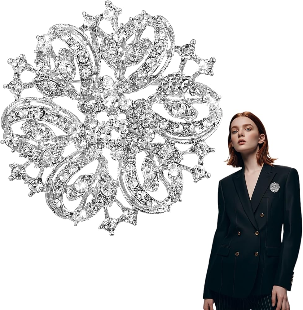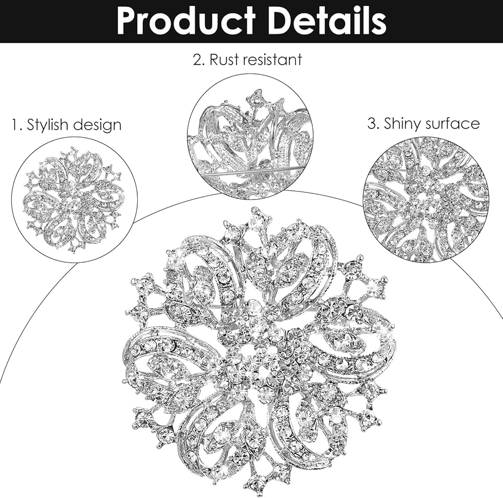 • Dazzling and Alluring: The silver brooch pin's core charm lies in its rhinestones. They refract dazzling light, instantly elevating your overall look and making you the center of attention in any setting. This sparkling brooch is not just an accessory, but an extension of your confidence and charm, adding an unmissable touch of brilliance to your everyday outfits or special occasions