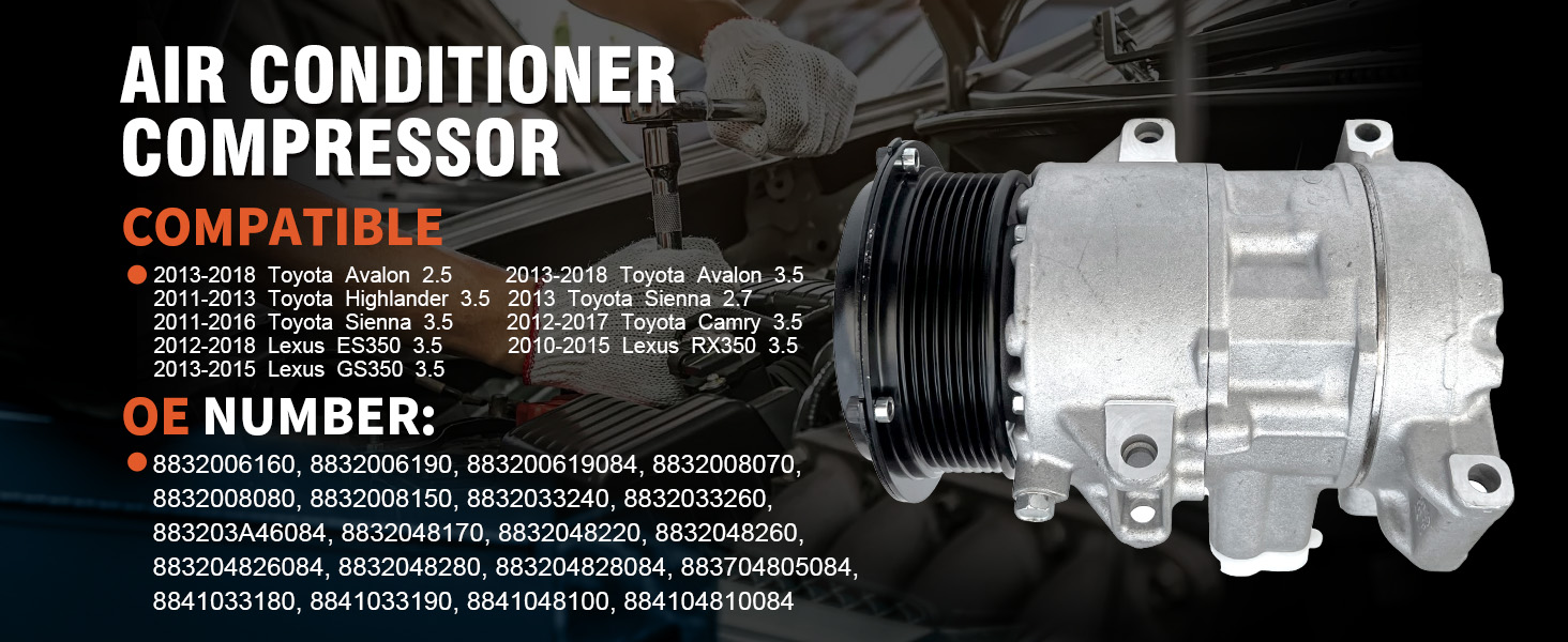 【ملاءمة مثالية】ضاغط تيار متردد للسيارات ومجموعة قابض مكيف الهواء تناسب Lexus ES350 2012-2018، Lexus RX350 2010-2015، Toyota Avalon 2013-2018، Toyota Camry 2012-2017، Toyota Highlander 2011-2013، Toyota Sienna 2011-2016، يرجى التحقق من رقم الجزء ومخطط الإعداد الخاص بنا قبل تقديم الطلب