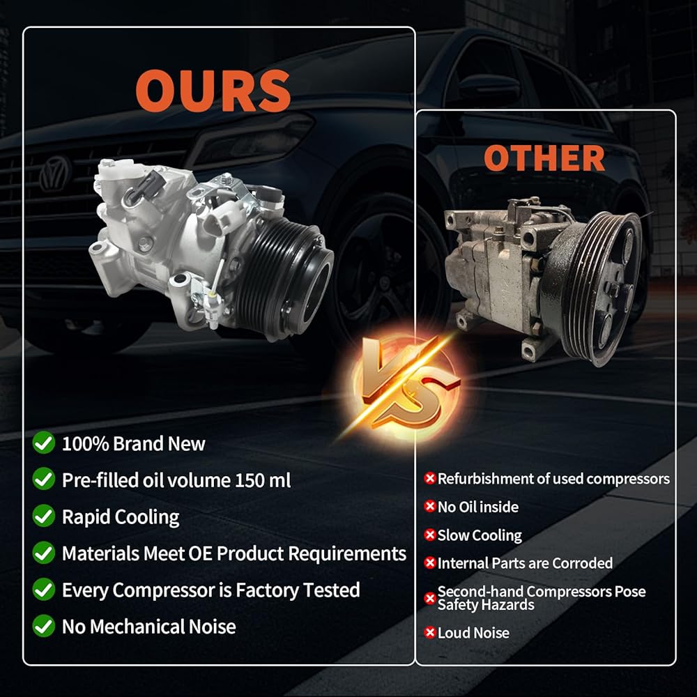【تبريد محسّن 】- تم تصميم ضاغط مكيف الهواء الخاص بنا مع القابض لتوفير أداء تبريد مثالي، مما يضمن بقاء الجزء الداخلي لسيارتك مريحًا حتى في الطقس الحار. وهذا يمكن أن يعزز تجربة القيادة الخاصة بك بشكل كبير، مما يجعل قيادة سيارتك أكثر متعة.