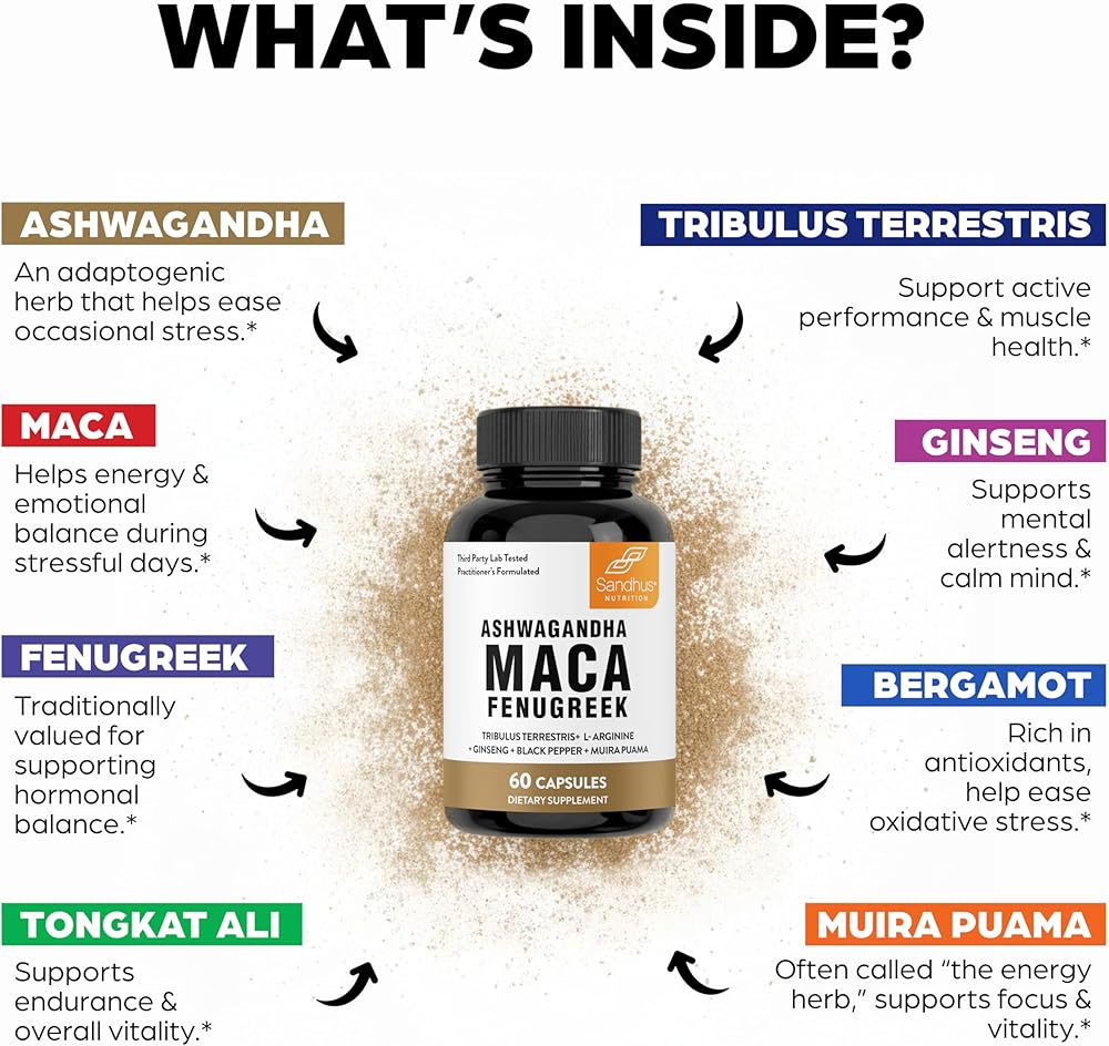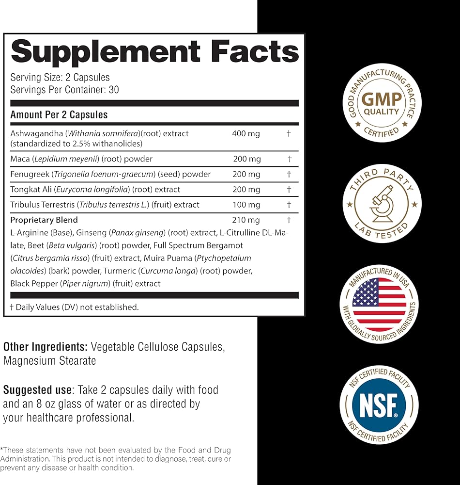 𝗛𝗲𝗿𝗯𝗮𝗹 𝗙𝗼𝗿𝗺𝘂𝗹𝗮𝘁𝗶𝗼𝗻 - تم تركيبه من نباتات تم اختبارها عبر الزمن بما في ذلك مويرا بواما وأشواغاندا وجذور الماكا والحلبة والتريبولوس تيريستريس للمساعدة في الصحة العامة.*