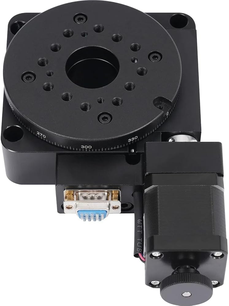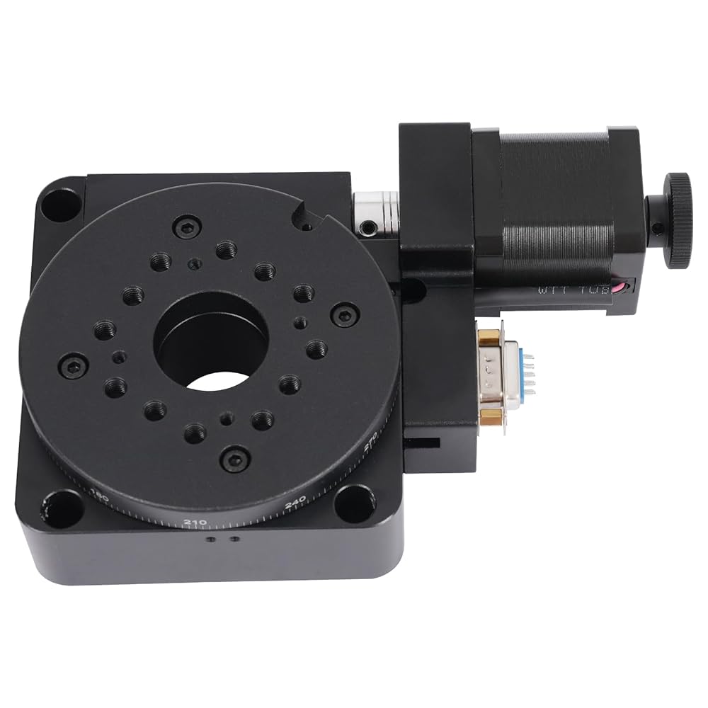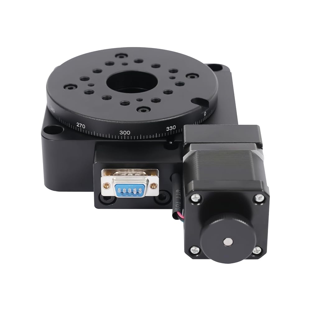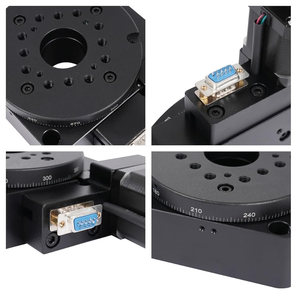 محرك متدرج قياسي وواجهة DB9، اختر مرونة وحدة التحكم، حتى نتمكن من توفير نظام حركة مخصص بالكامل. منصة توقيت مع محرك متدرج وواجهة RS232 لسهولة الاتصال بوحدات التحكم في الحركة.