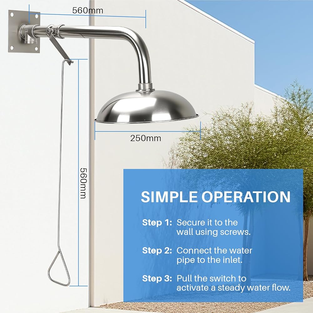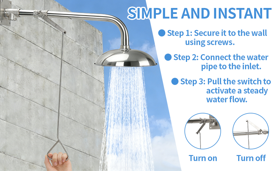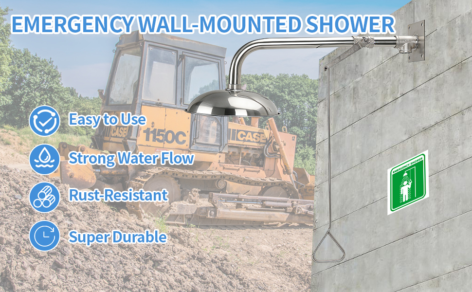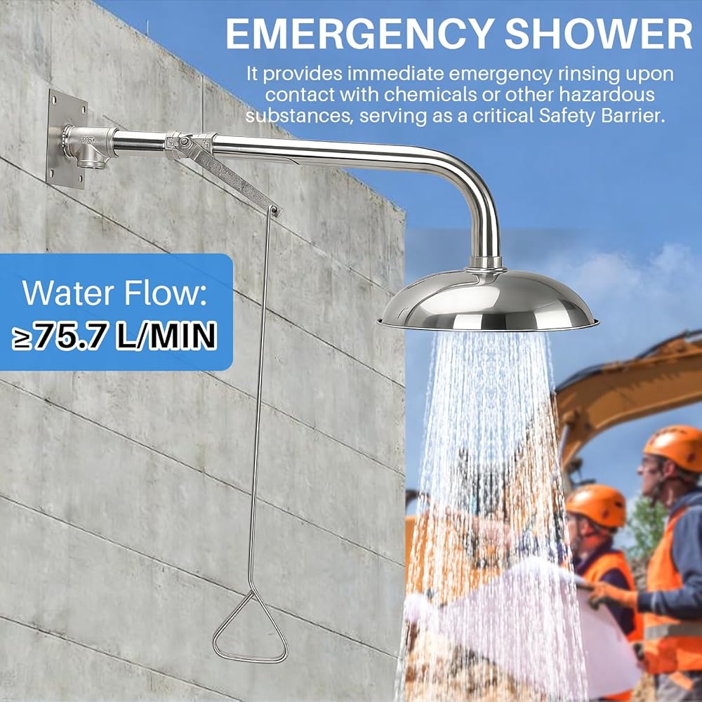 تشغيل بسيط وفعال: عندما تكون هناك حاجة للاستحمام في حالات الطوارئ، ما عليك سوى سحب المقبض. يتم تفريغ الماء خلال ثانية واحدة، لبدء عملية الشطف الفعالة. إنه يوفر تدفقًا قويًا للمياه يبلغ ≥75.7 لتر/دقيقة، مما يلبي الطلب عالي التدفق في حالات الطوارئ.
