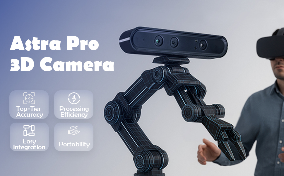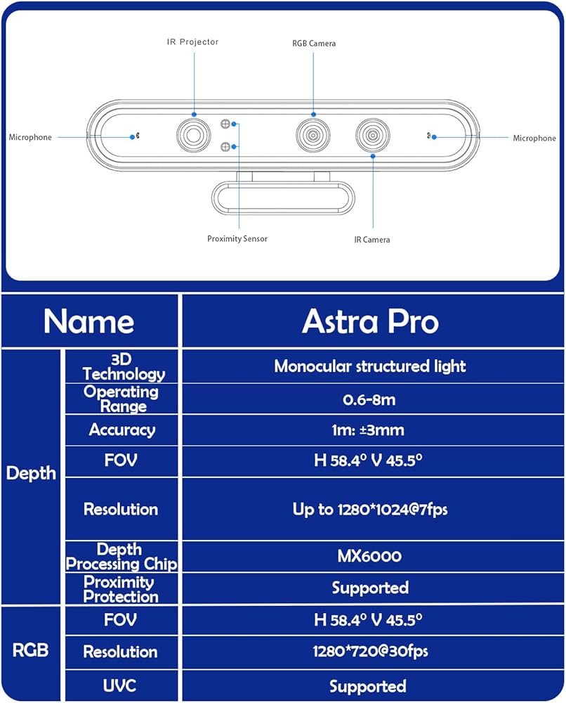 High-Efficiency Processing for Real-Time Robotics – Powered by Orbbec ASIC, Astra Pro robot camera delivers artifact-free, high-fidelity depth at 1280×1024 @ 7 fps and RGB at 1280×720 @ 30 fps simultaneously. With a 0.6–8m ranges, optimization excels in lag-free applications like SLAM, automation, obstacle avoidance, and pose estimation—positioning Astra Pro as the premier camera for indoor robotic control where every millisecond counts.